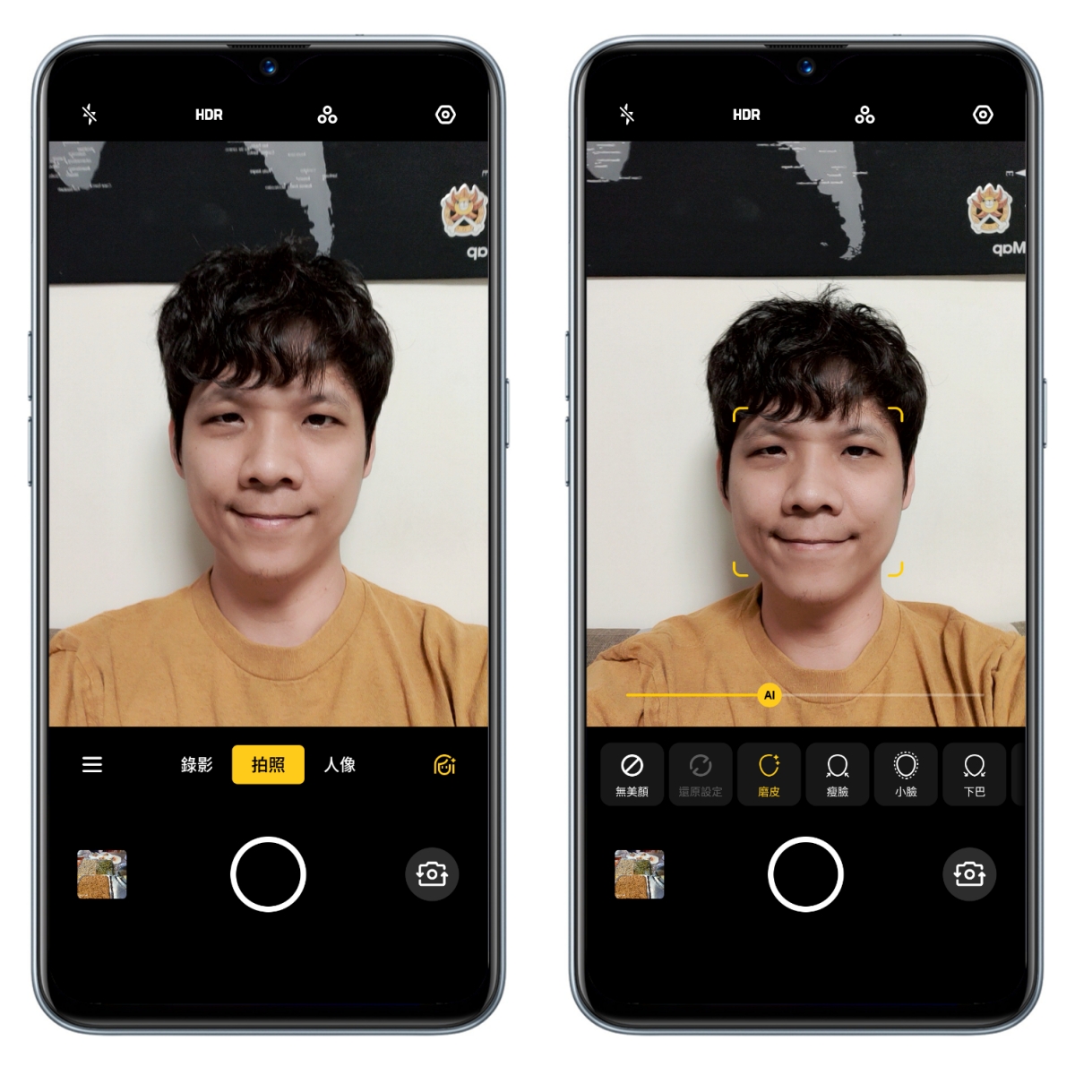 前置鏡頭的部份,支援 AI 美顏技術,你也可以針對美顏各細項自行手動調整。