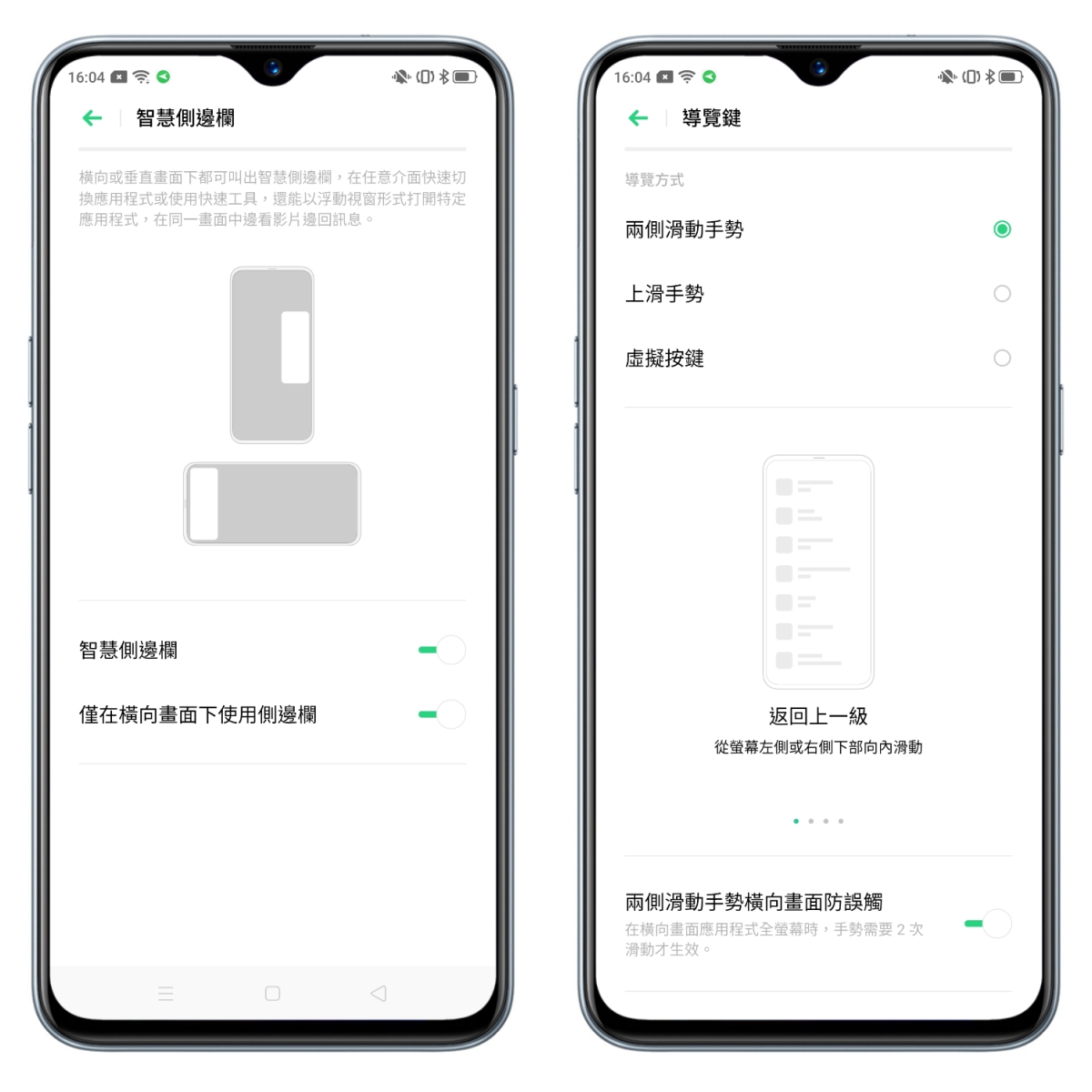 而導覽鍵的部份,在變成沒有實體操作鍵時,很多人覺得下方被導覽列佔用掉空間,現在你可以切換為兩側滑動手勢,比如像是回到首頁,只要由下往上滑,回到上一頁,只要由左至右或右至左滑等,我覺得操作上更加的直覺,也更適合單手操作。