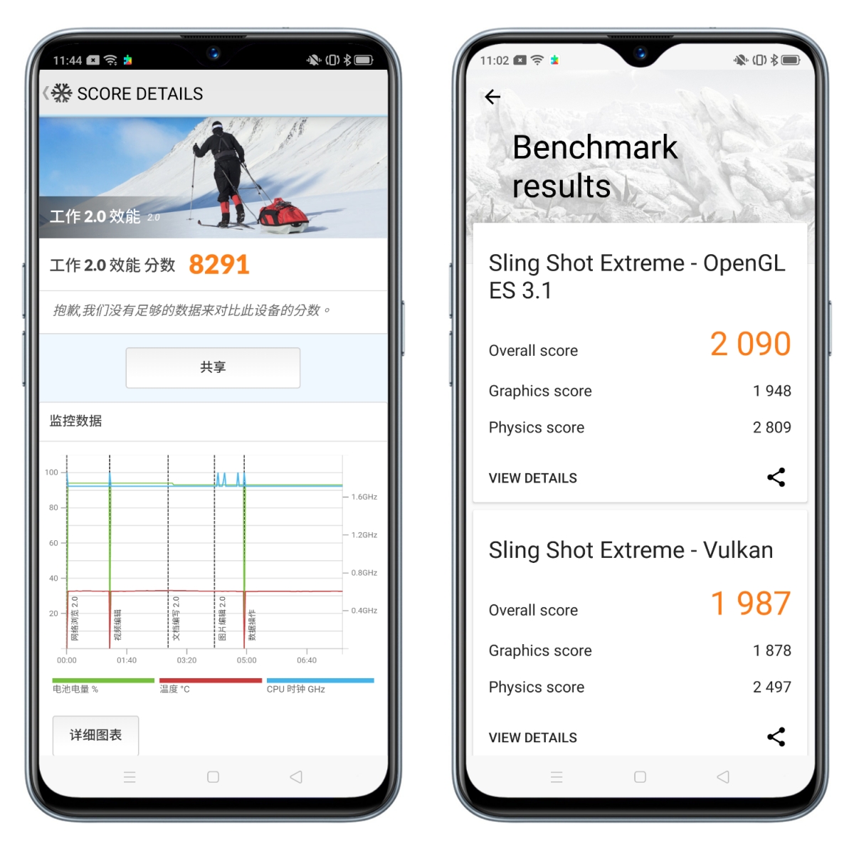 3DMark 測試下,OpenGL ES3.1 為 2090,Vulkan 為 1987。