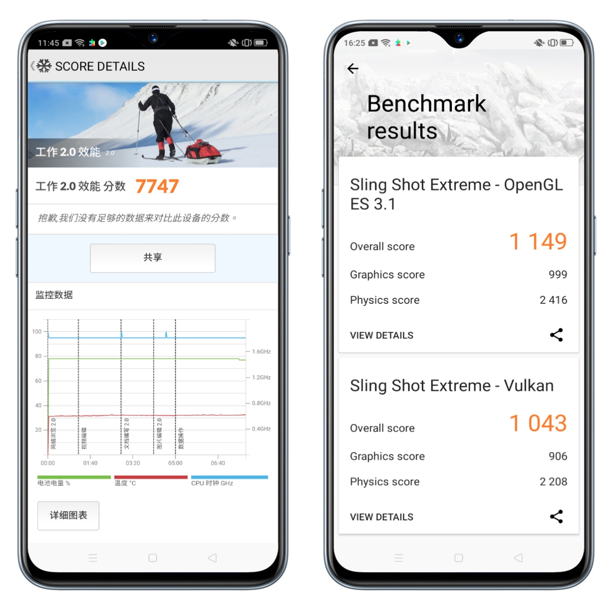 3DMark 在 OpenGL ES 3.1 下獲得 1149,Vulkan 為 1043。