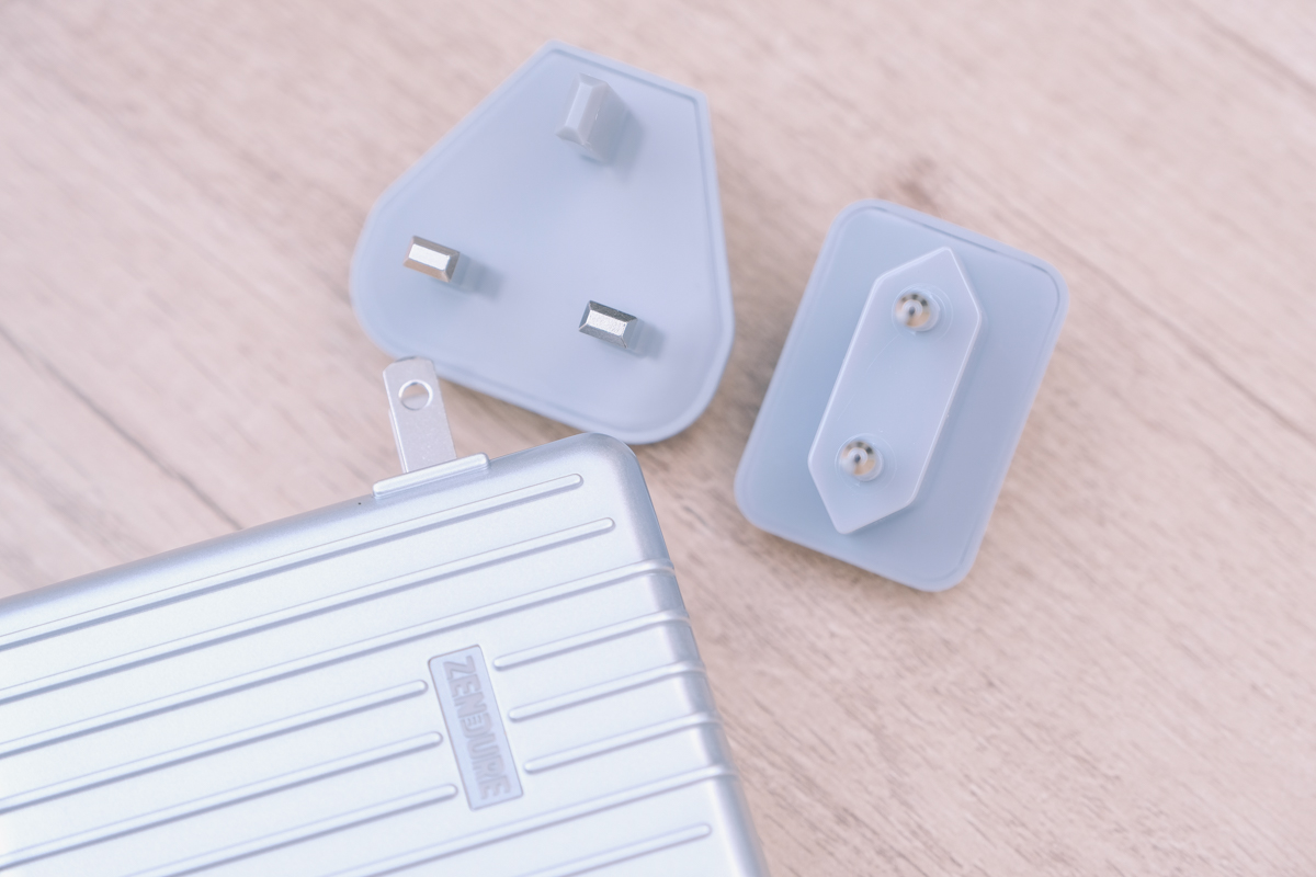 如果是出國旅遊,像是歐洲的插座規格不同,標配也附了二種不同的轉接頭可供使用。