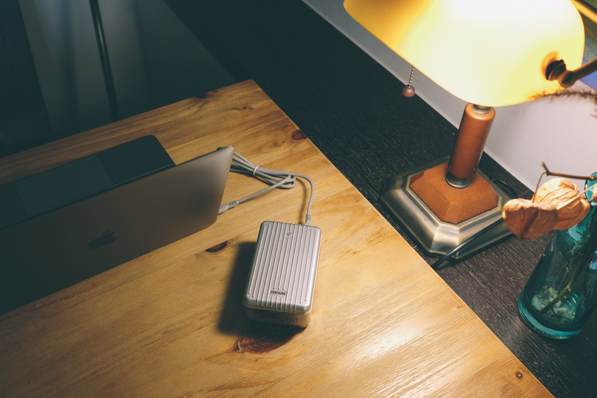 月黑風高的晚上(誤)出門到咖啡廳去工作,順便試了一下 Zendure SuperTank 行動電源,比起我之前用的另一個支援 PD 的行動電源充電快的多,以我在用的 12 吋 MacBook 來說,原廠標配的變壓器,最高是 29W,而我之前的行動電源僅到 18W,當我邊使用筆電時,如果是正在進行大量修圖,會覺得有點充不上去,就維持著電力不變,但 Zendure SuperTank 可以完全火力全開的充電,幾乎就跟插著電在使用沒什麼二樣了。