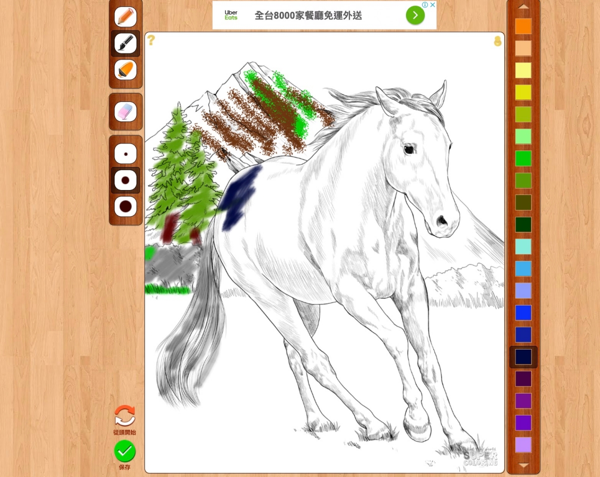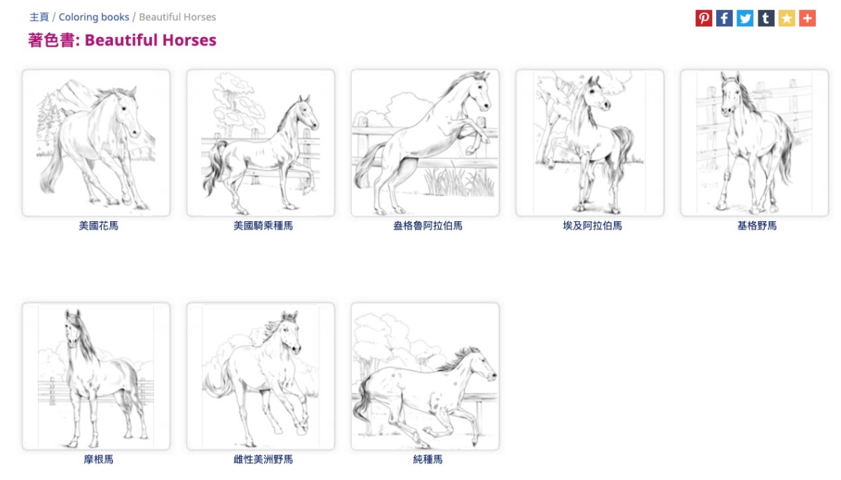 隨意點一個著色書進入後,像是馬,裡面還分了超多種類的馬可以選擇。