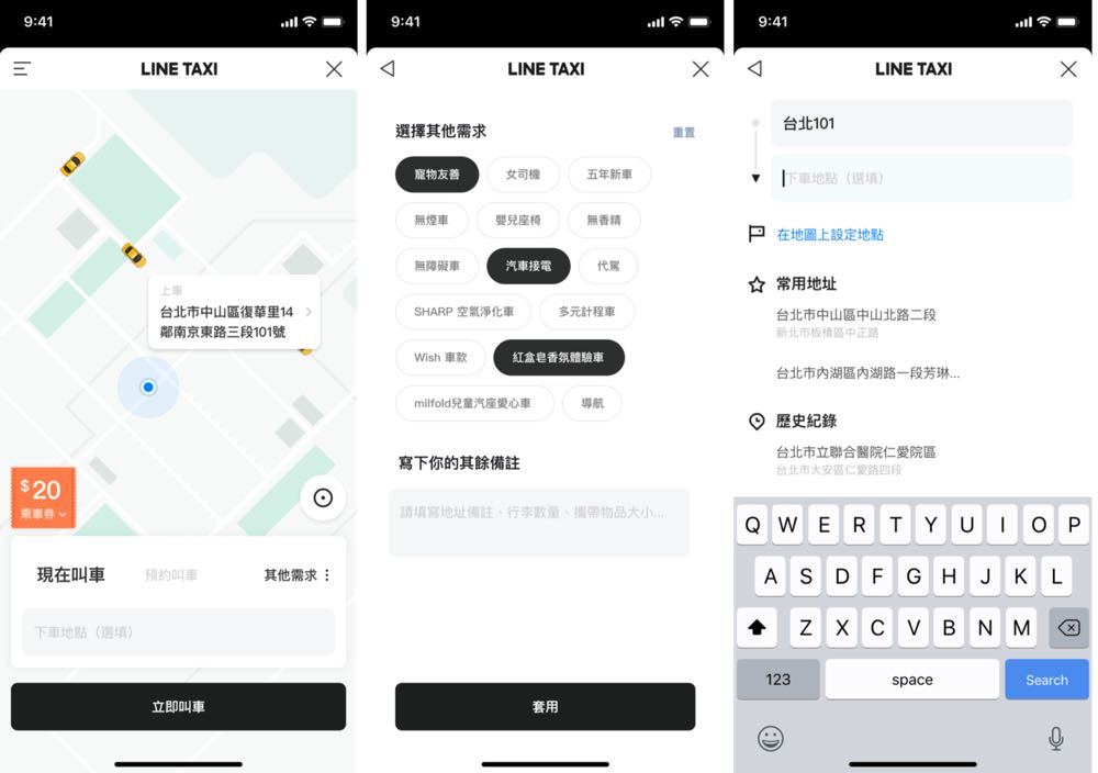 LINE TAXI 還有提供「現在叫車」與「預約叫車」服務。