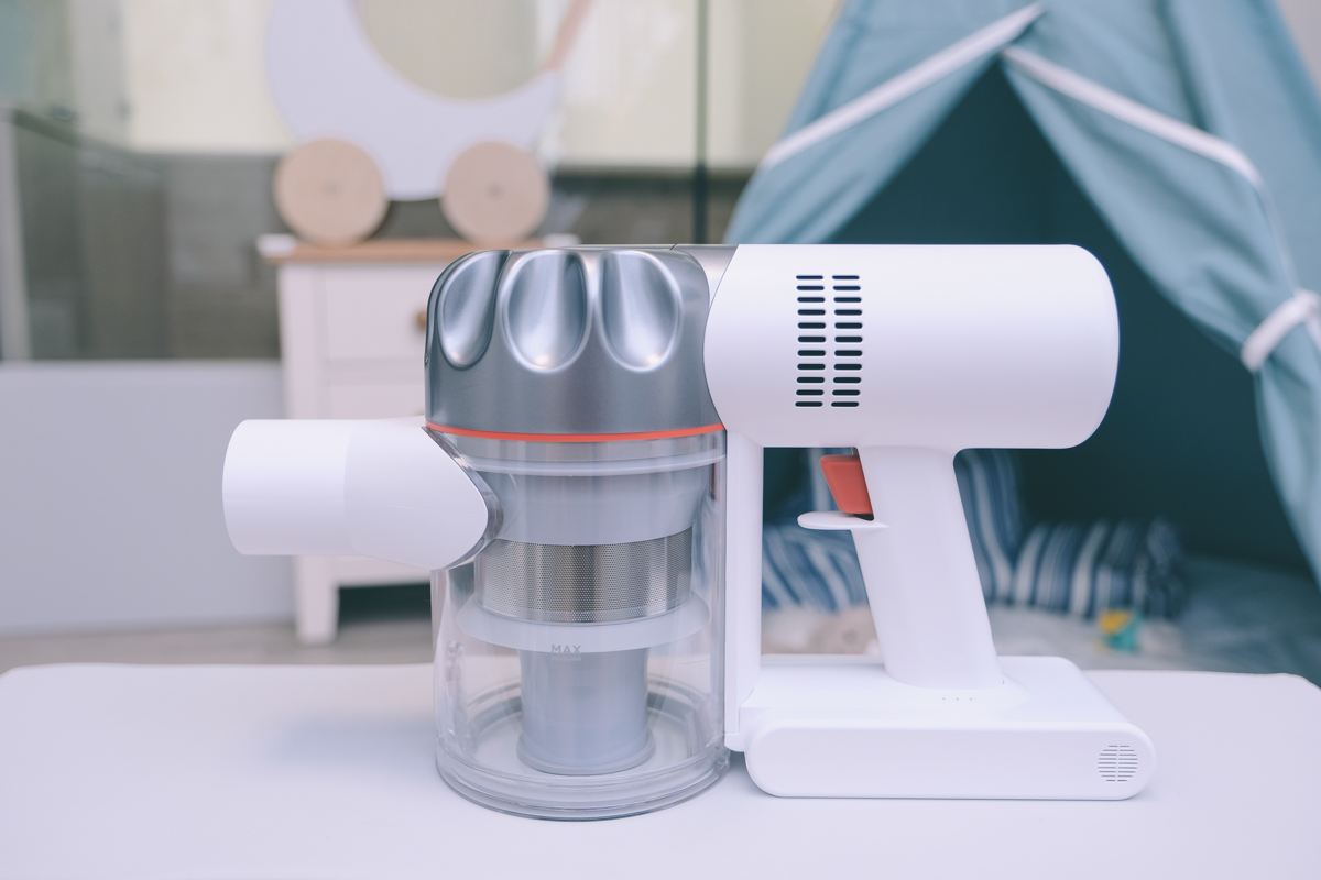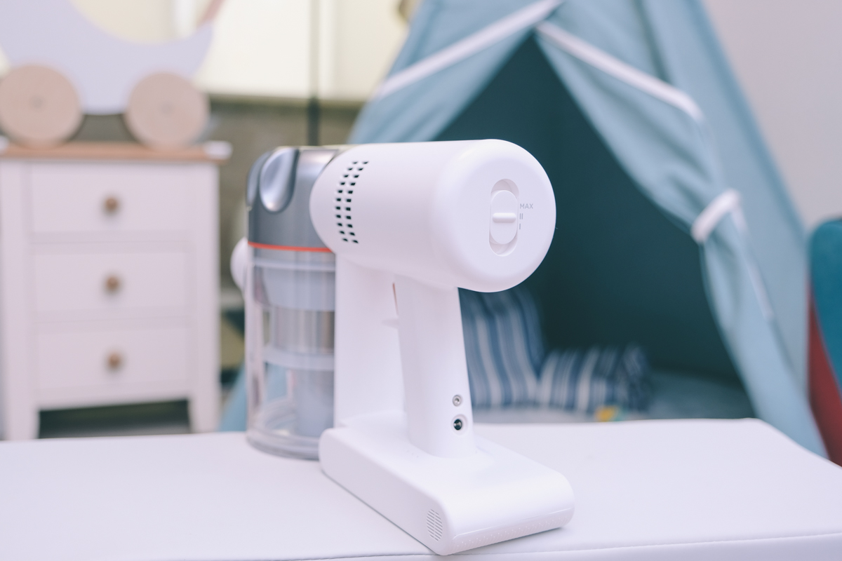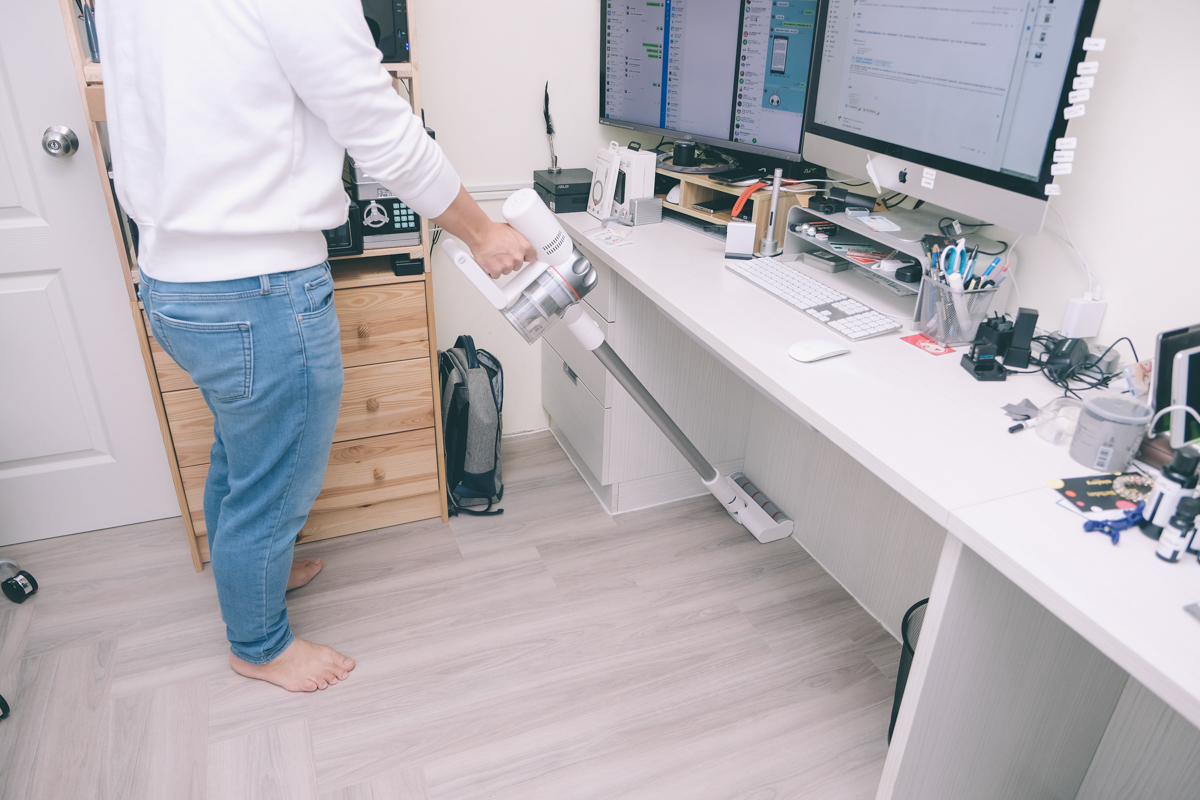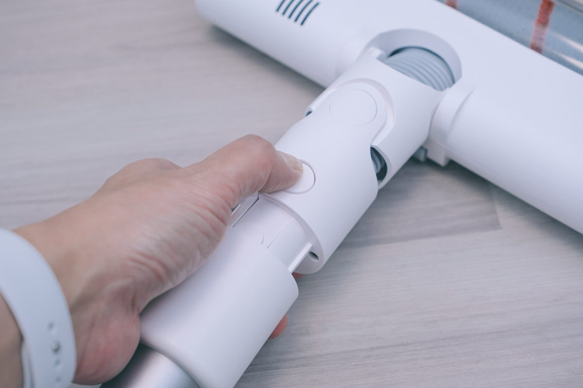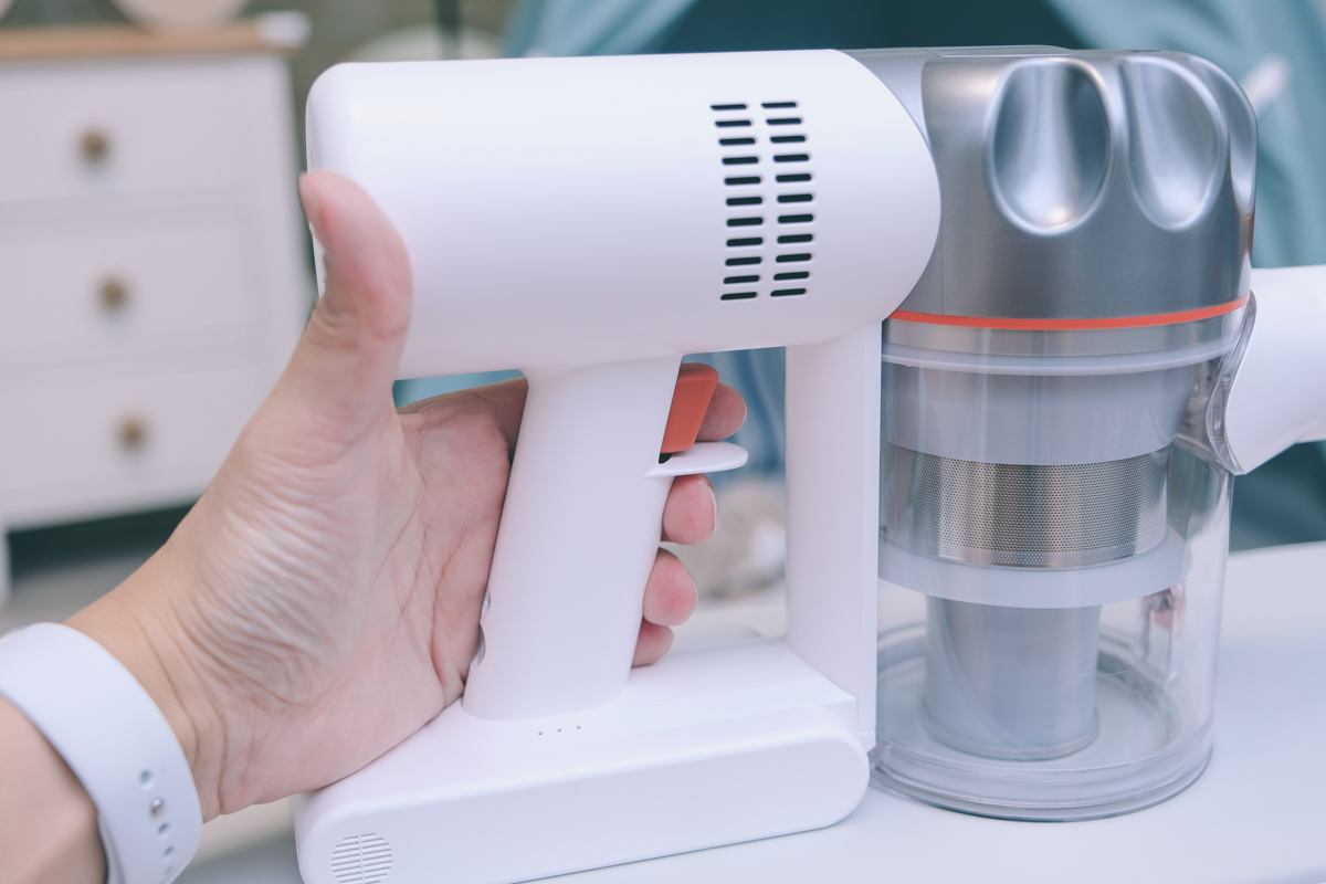 啟用的設計是槍型,按住時會進行吸塵,放開就停止,由於機身很輕,在使用時不會有費力的感覺。