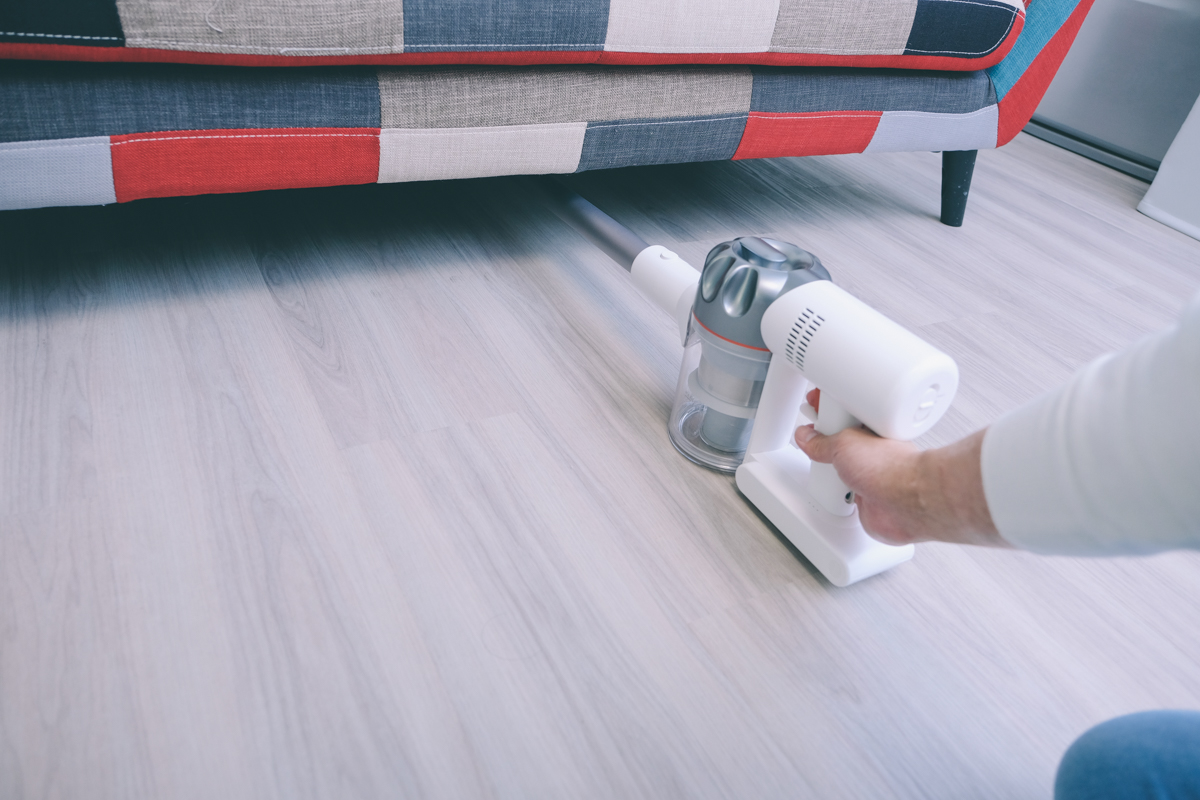 軟絨主吸頭 + 二合一扁刷清理客廳區域,共費時 10 分鐘。