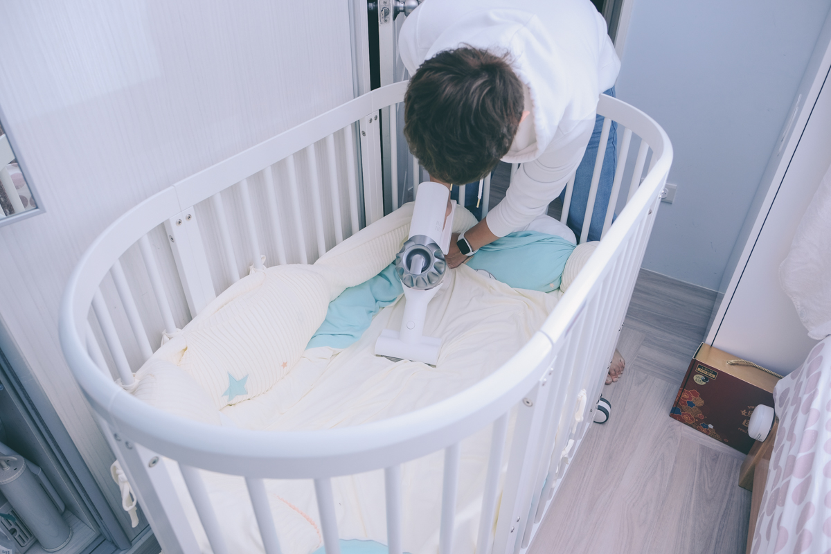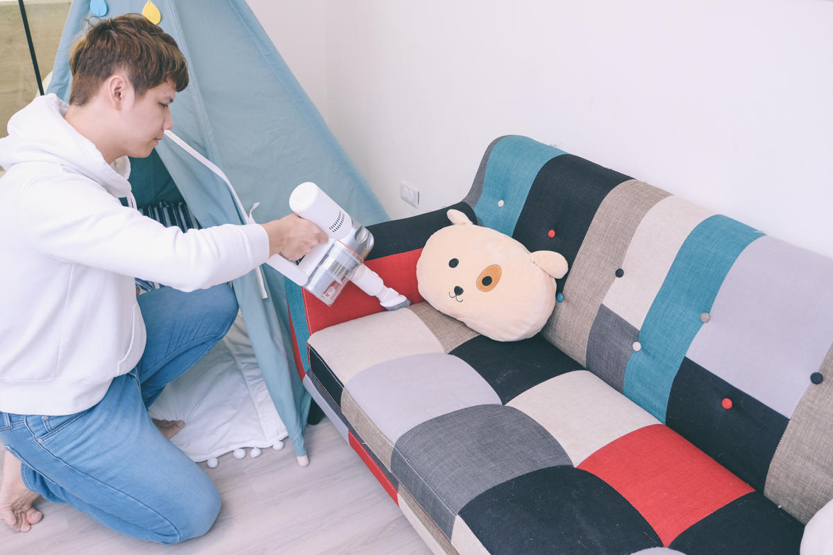 最後是用這個電動除蟎刷,透過拍打(每分鐘 10 萬次)跟強力吸力來去除藏在床墊、沙發、枕頭等底下的塵蟎或是皮屑,透過這樣的方式再吸入塵蟎,有些品牌吸塵器僅用強力吸力去除我覺得是不夠的。