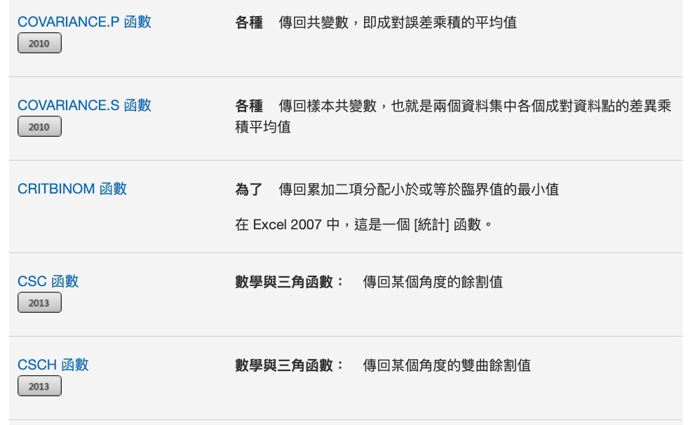 好啦,這超短文就到這裡,基本上我自己的 Excel 函數都是在這裡看範例跟解說,剩下就要靠邏輯思考自行來運用,在這頁面裡的所有函數點擊後都會進到解說頁面,你就把他當做是函數字典吧。