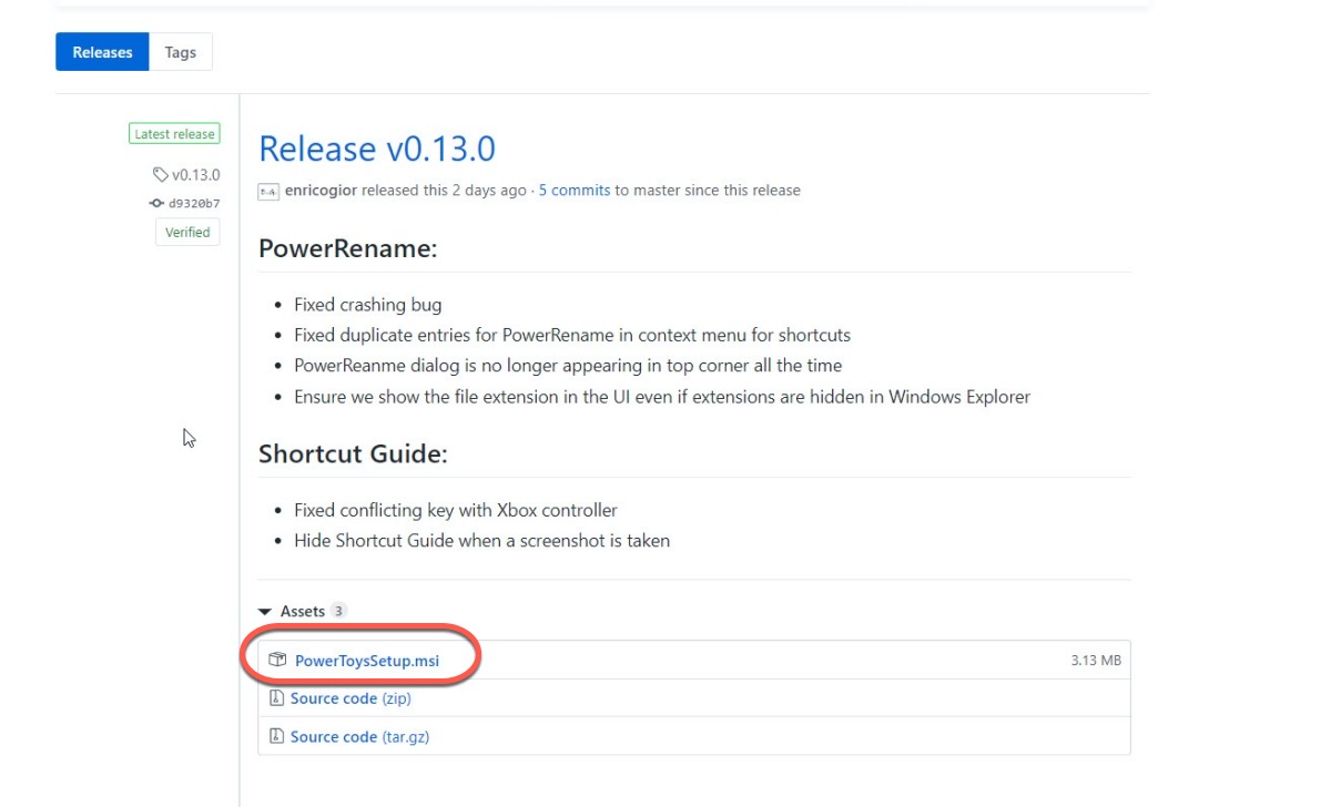 進入下載頁後直接看最新版號直接下載「PowerToysSetup.msi」這個檔案,然後進行安裝。