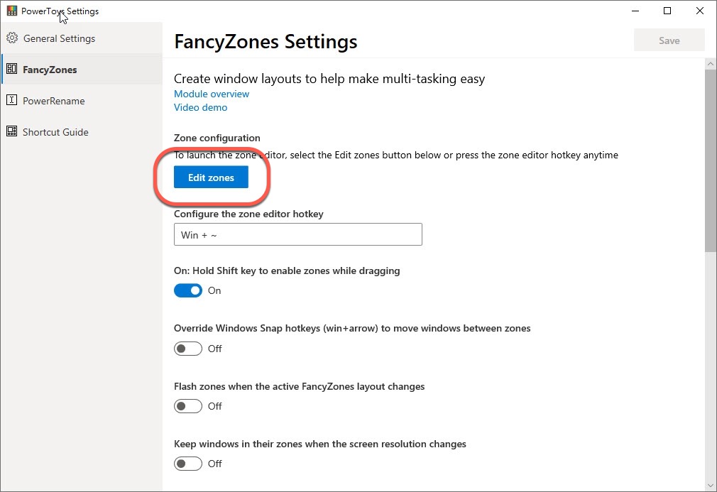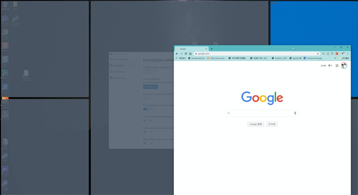 首先是 FancyZones,這個就是排列視窗用的,你可以編輯排列區域後,之後只要有很多視窗想要進行排列就可以隨時使用,我們往下來看。