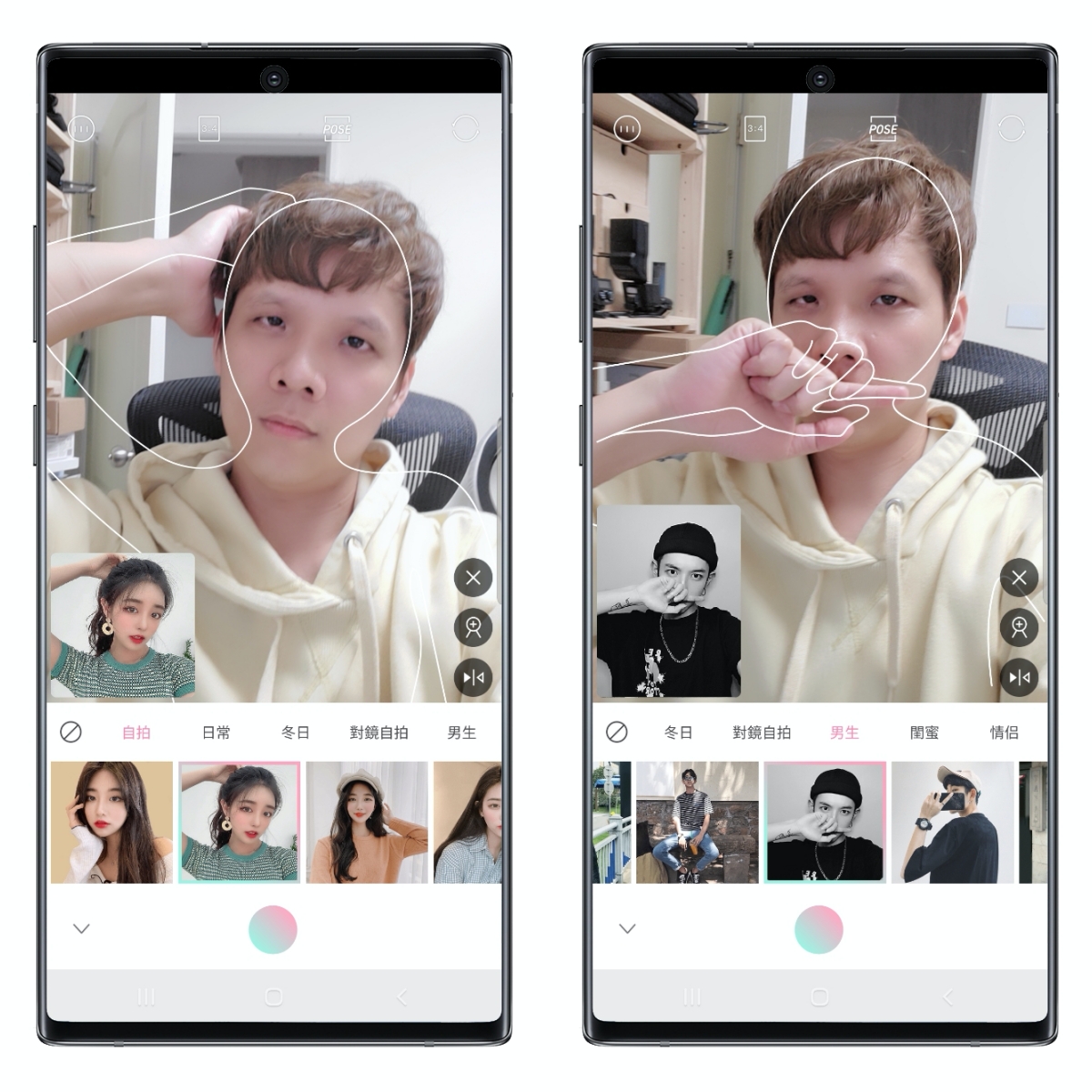 不只有女生,也有男生裝帥的姿勢,但可惜我人醜性騷擾啊。