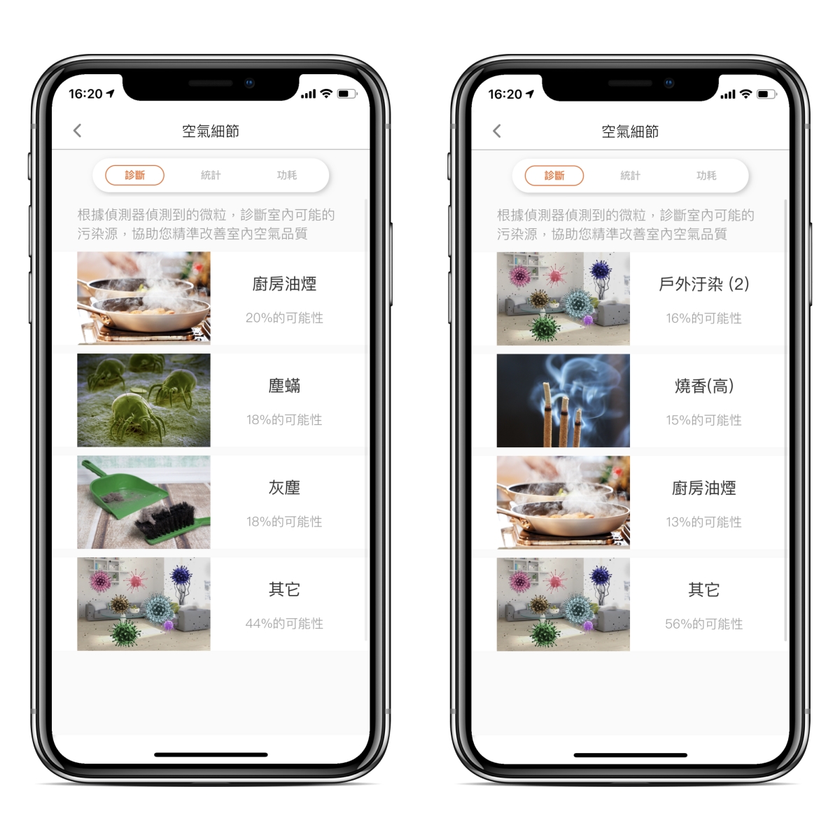 當你發現空淨機如果開始變紅變紫時,但不確定是什麼原因的話,可以在空氣細節查看,會幫你判斷一些功能性,讓你可以找出原因並進一步的處理及改善,這也是目前市面上唯一加入判斷的空淨機機種。