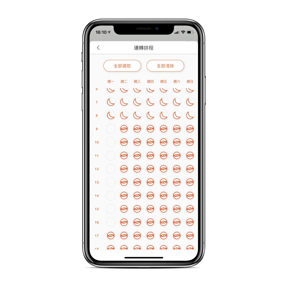一般空淨機的排程功能,僅能排程開跟關,在 BRISE APP 裡,你不僅可以排程電源開關,還能依據不同時間選擇使用不同模式,比如上班時間就關閉,下班前 1 小時打開後開始運轉,進入固定的睡眠時間就切為夜間照護模式(或前面提到的智慧光感功能開關讓他自動依光線自動判斷),諸如此類的,可以更彈性的排程需要的模式。
