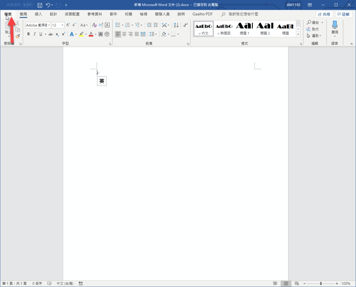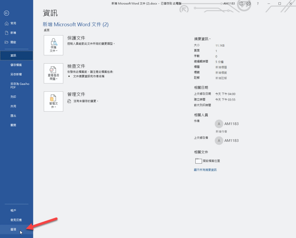 進入 Word 後,點擊左上角的檔案。註:以下截圖是使用 Office 365。