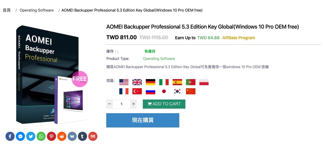 買 AOMEI 軟體送 Windows 10 專業隨機版序號