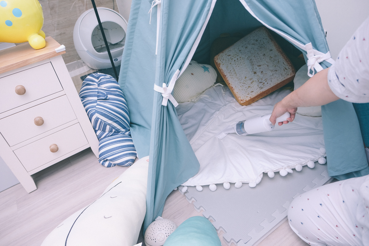 湯包的帳棚遊戲區,同樣也用清蜓 FV2 來搞定。