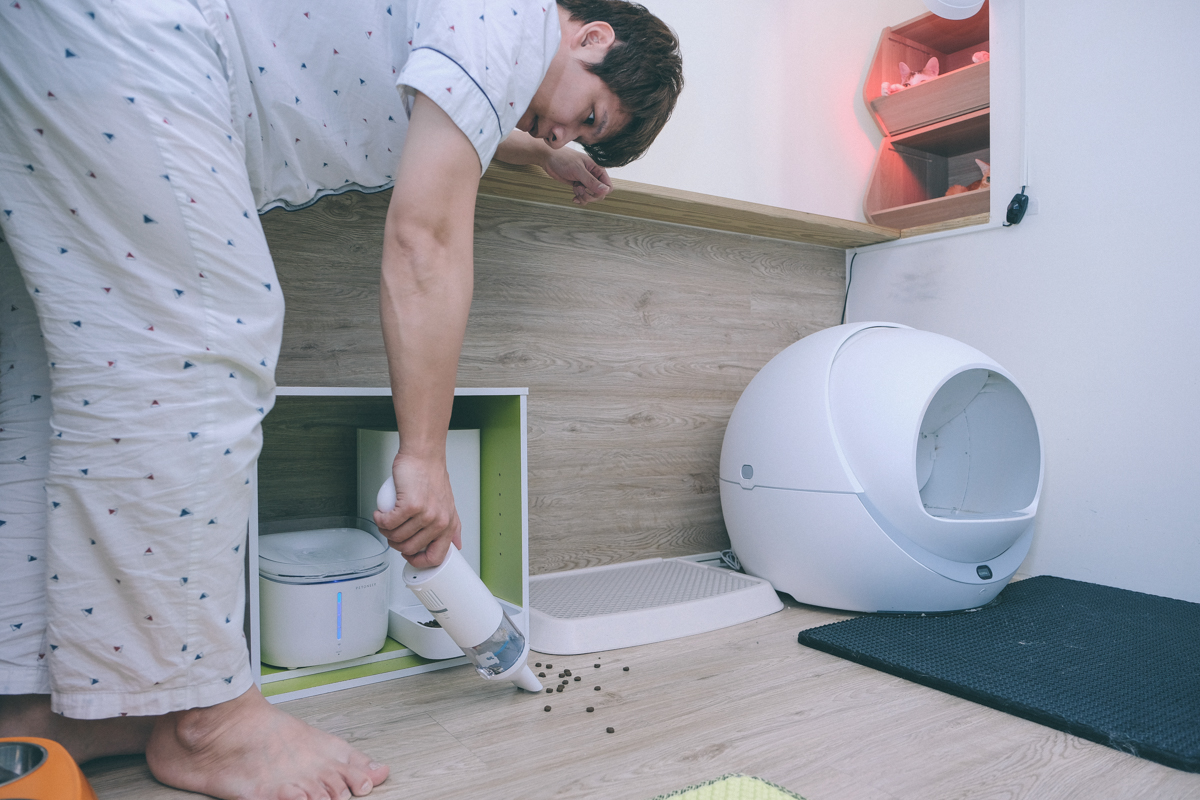 貓屋最常需要清潔的就是被他們邊吃邊玩弄的一地的貓飼料,或者像是貓砂等。