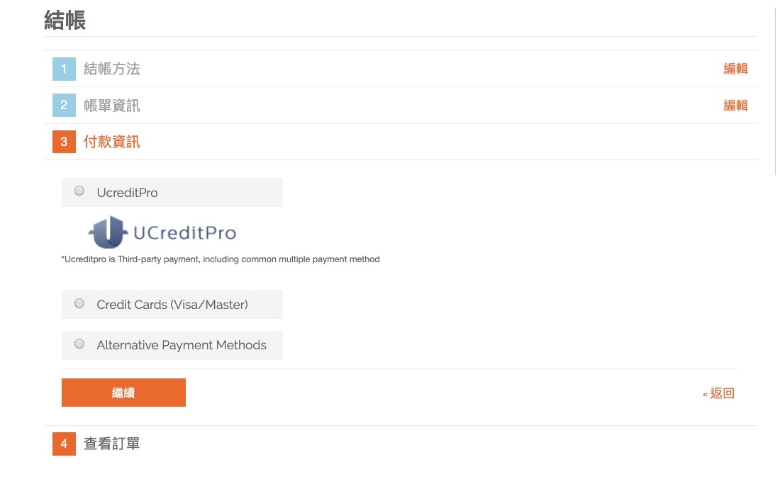 結帳有三個方法,基本上就用信用卡最方便,可以選第二個。