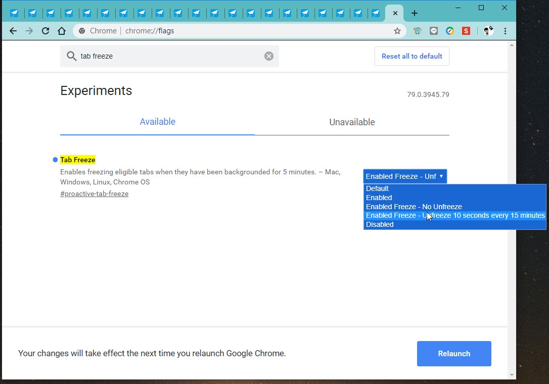- Enable Freeze(Unfreeze 10 s every 15min.):當未使用分頁超過 5 分鐘後就會自動凍結,每過 15 分鐘自動回復 10 秒