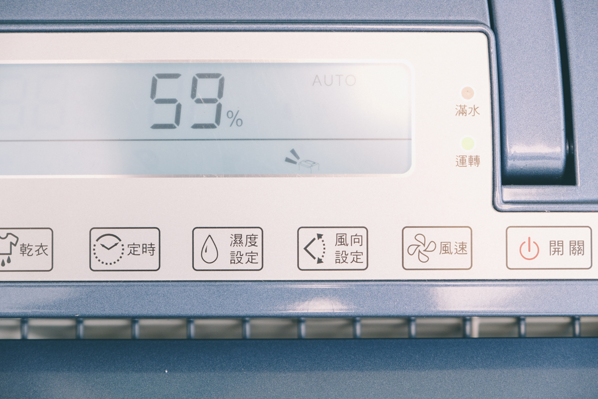 濕度可以設定的範圍為 40%~70%,風速設定的部份一共有三段,大家最在意的就是除濕機的噪音值,阿湯曾經買過某 W 牌的除濕機,以為除濕機聲音應該就大同小異吧,沒想到買回來開下去即便是最低速運轉還是像一台戰車在耳邊轟轟轟的,真的受不了,馬上就退貨了。