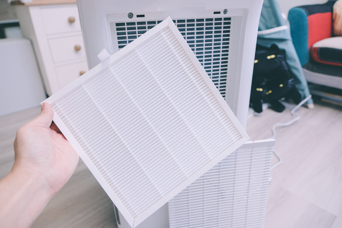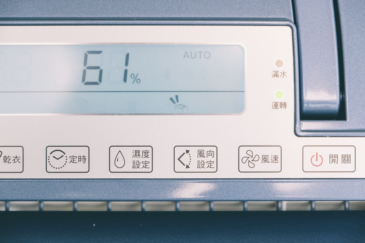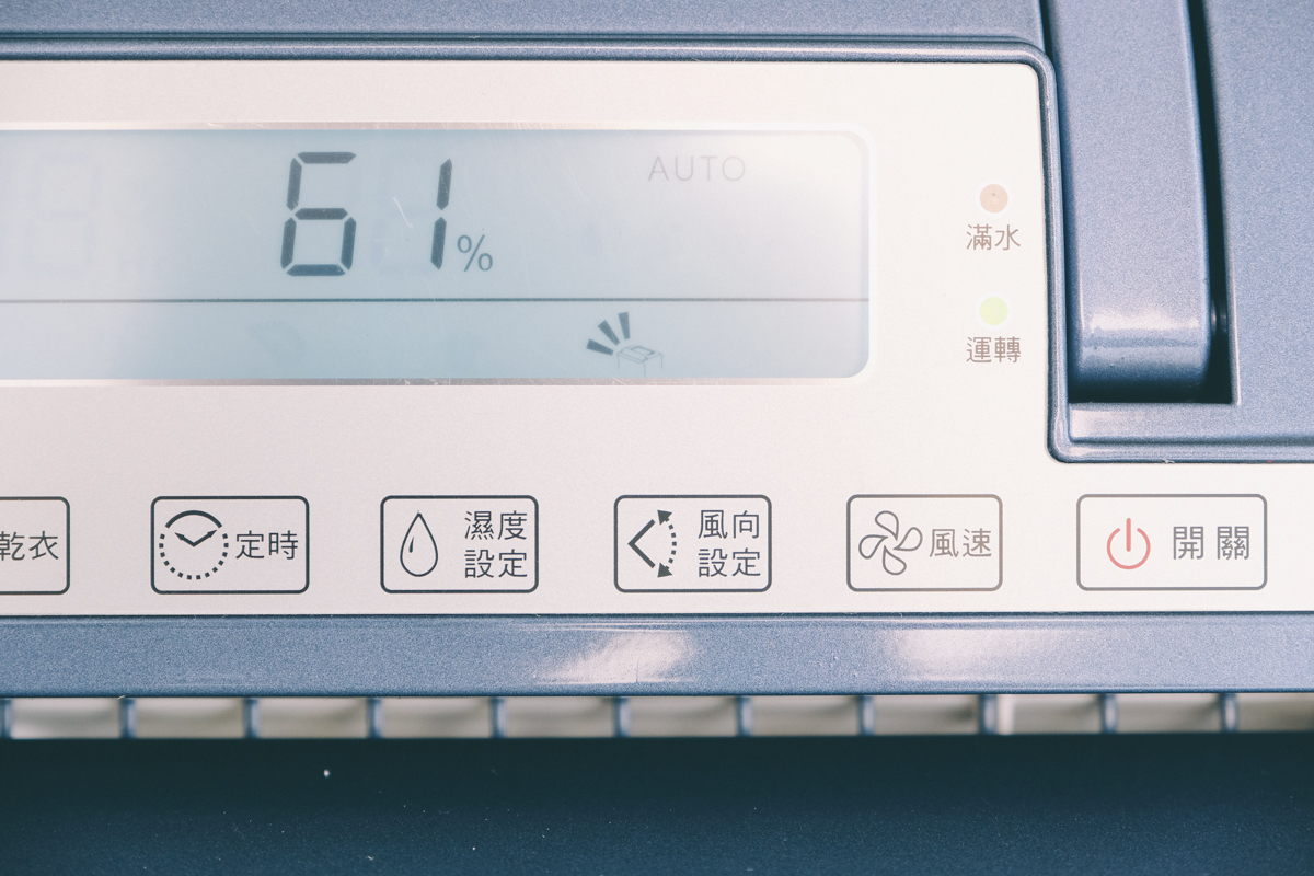 進氣口的部份加上了一層 HEPA 等級的濾網,除濕的同時也能進行空氣清淨,當濾網使用累積達 2,160 小時也會亮起濾網更換提醒燈,這時會停止運作,如果更換完畢只要再長按濾網更換鍵三秒就可以繼續使用(重新計時的意思)。