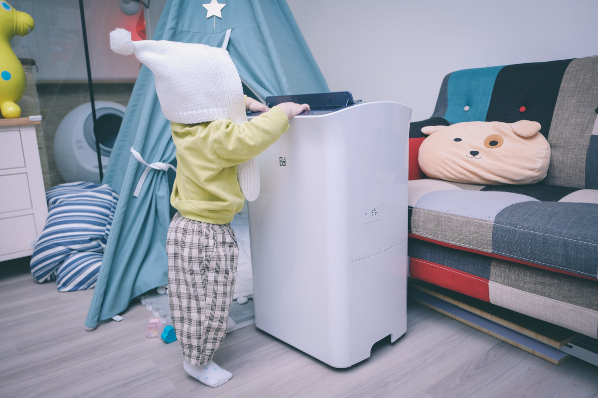 像我兒湯包跟我一樣都是過敏兒(為什麼要遺傳到這天殺的基因),每天睡前也都會先開除濕機降低房間濕度,讓他在睡覺時舒適一些,但睡覺時一般都不能開(之前),因為怕吵到他,最近他睡覺時開最低速運轉保持濕度完全沒問題,可以整夜都維持舒適的濕度(大約 60%),像我去日本就完全不過敏,那乾燥的空氣完全是我的救贖。