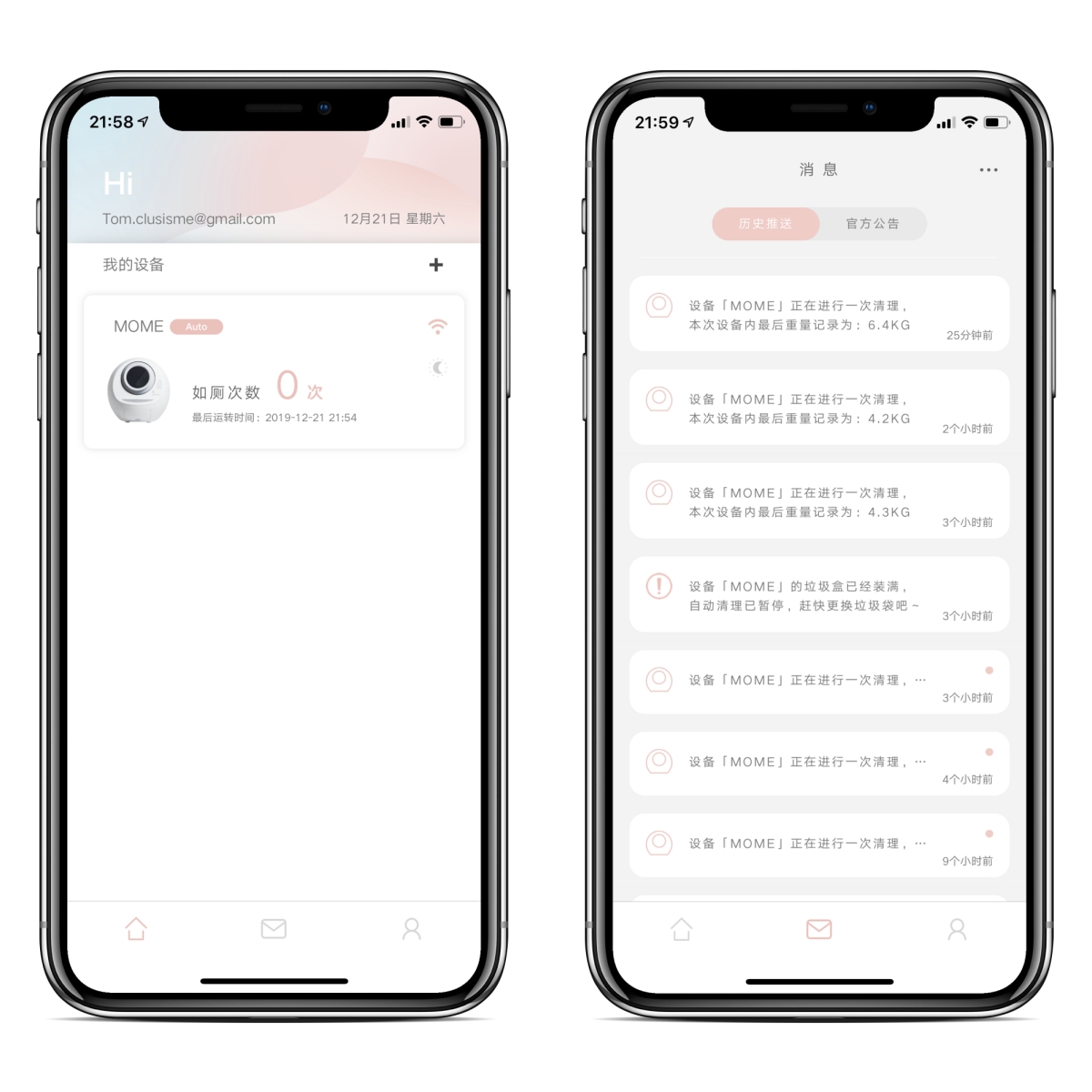 APP 的部份,目前還很陽春,只能查看如廁次數跟記錄,比如可以看到每次進入的時間跟重量,這樣如果家中有二隻以上喵星人且體重有落差的話,那就可以推測出各別進去了幾次,也可以大致上的了解貓咪的上廁所習慣,希望之後可以更新成有圖表或每日、週、月再依體重自動區分等功能,那就更棒了。