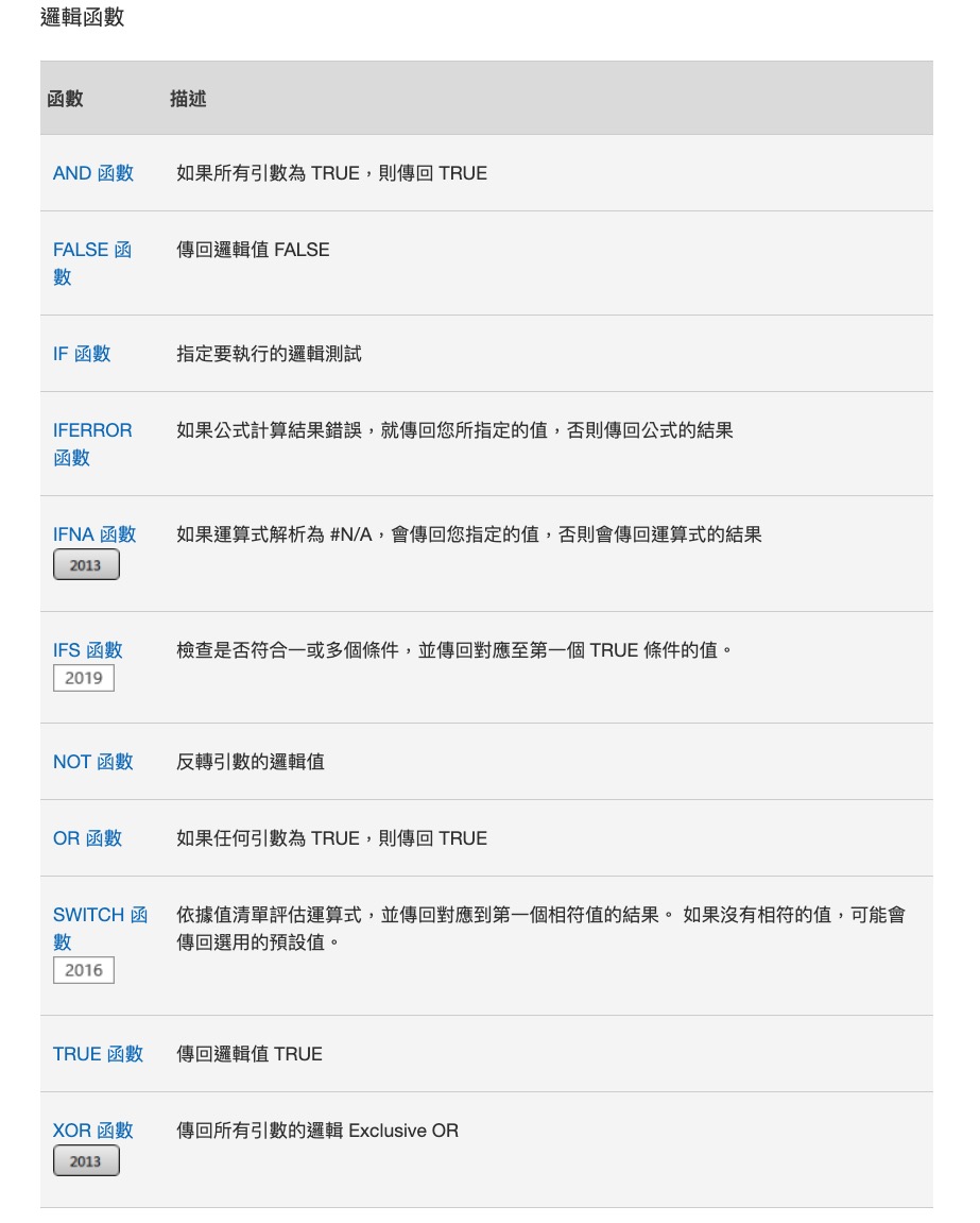 邏輯函數一共有 11 個,有興趣大家也可以去研究一下,其實這些都算是很常會用到的函數,或是用來搭配 IF 都相當好用。