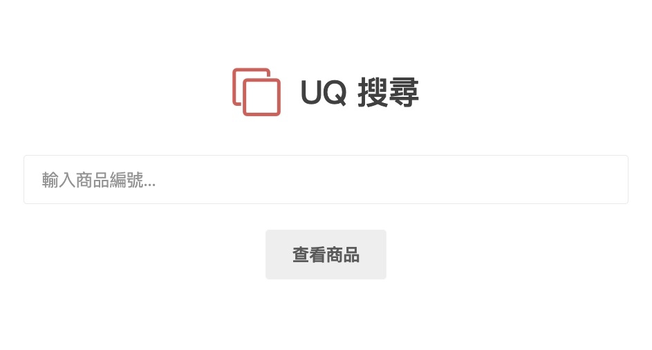 UQ 搜尋器:請點我前往使用很簡單,只有一個搜尋框,就是用來輸入商品編號用的,這個商品編號如果是在實體商店的話,衣服上的標籤通常都會有,如果你是逛線上商店,我們往下來看。