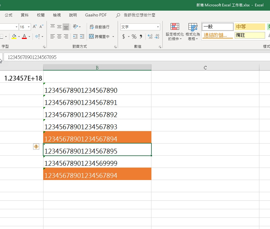 可以正常顯示 15 位數字很簡單,但會遇到另一個問題,我們繼續來看。