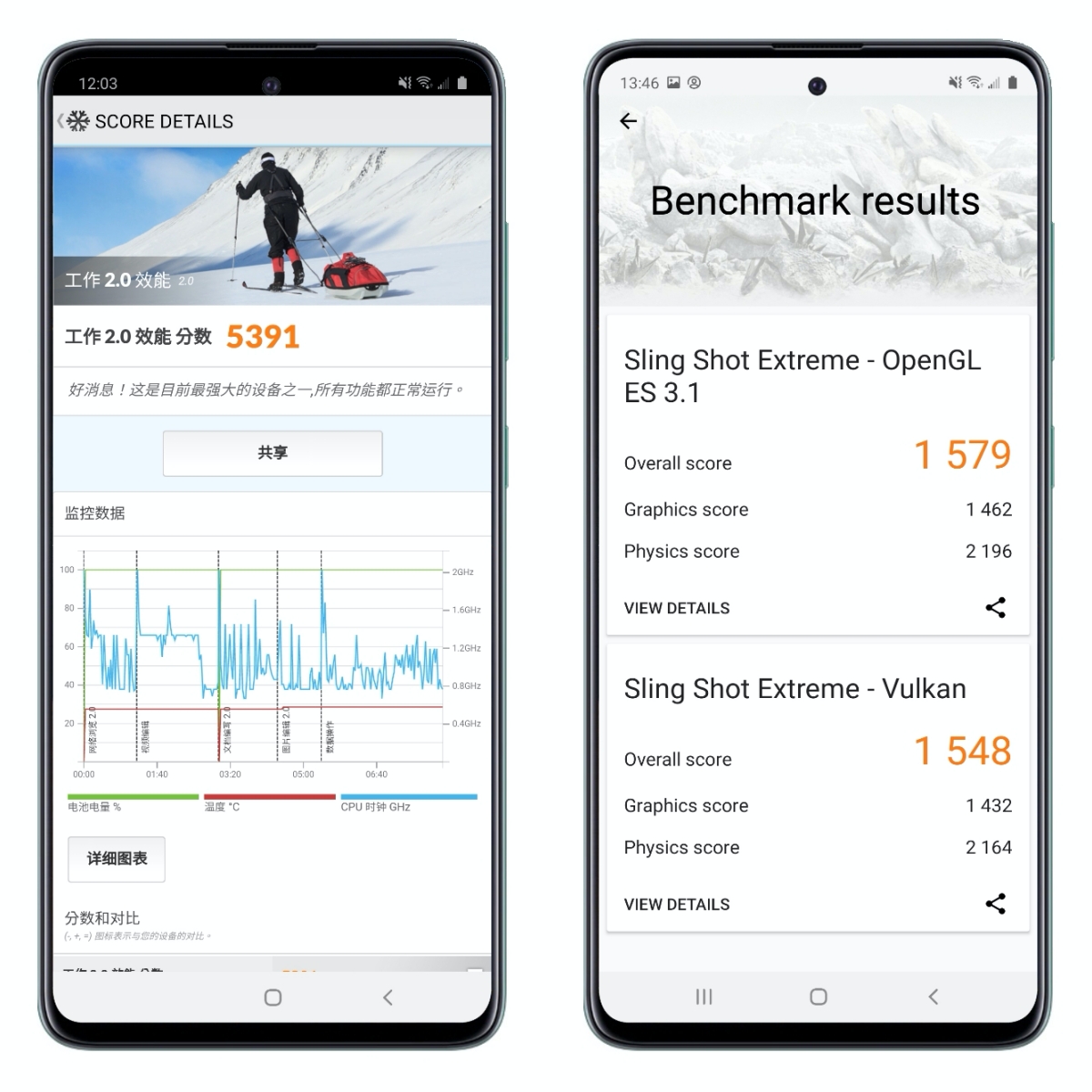 3DMark 測試:OpenGL 為 1,579、Vulkan 為 1,548。