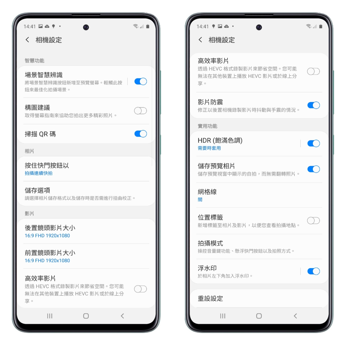 如果你對於拍攝照片的功力沒那麼強,特別是水平的部份,建議可以開啟構圖建議、影片防震、網格線這幾項來輔助拍攝,錄影也加入了影片防手震的功能,拍攝影片能帶有相當程度的畫面穩定效果。