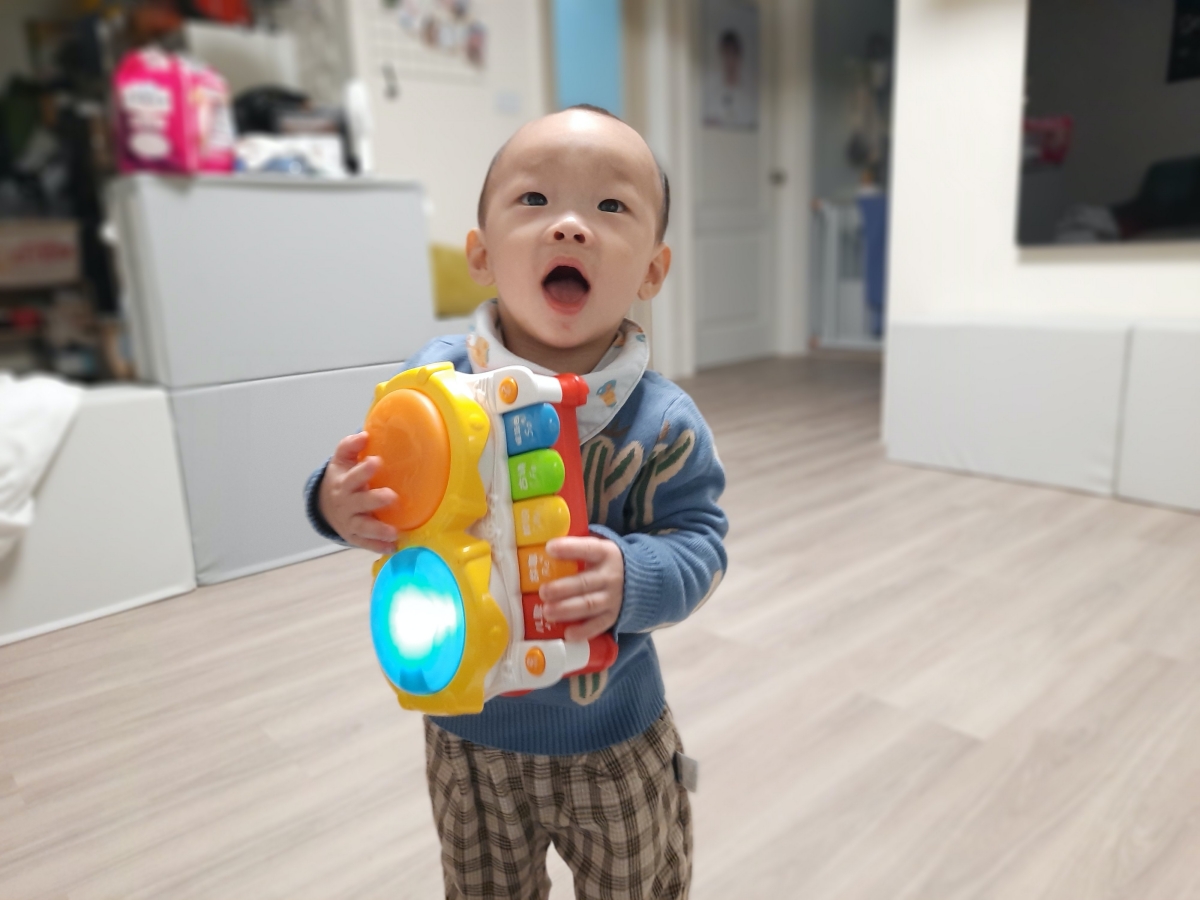 我兒湯包的微距,他正專注的在看什麼?答案是:喵星人。