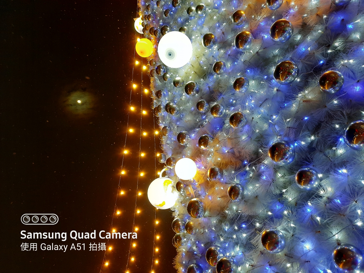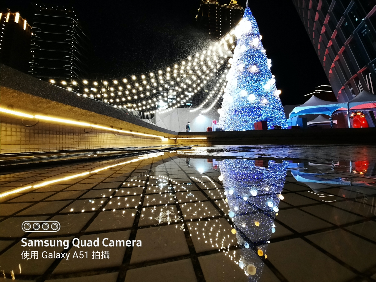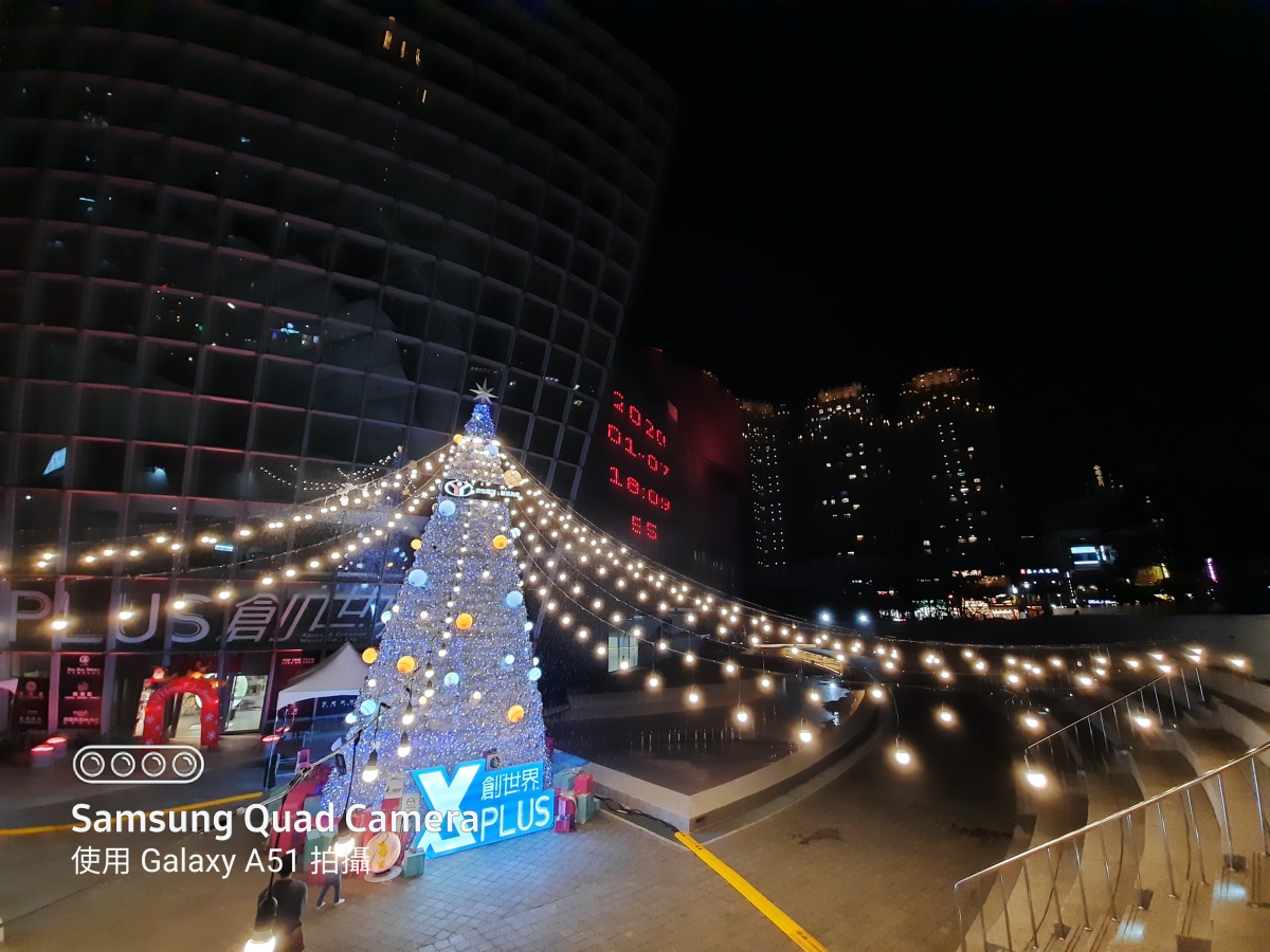 然後再看一下晚上拍攝的,先自動模式給大家看一下主鏡頭的日夜間自動切換,Galaxy A51 的調校真的相當的不錯,因為這畫面裡的樹夜晚其實很暗。