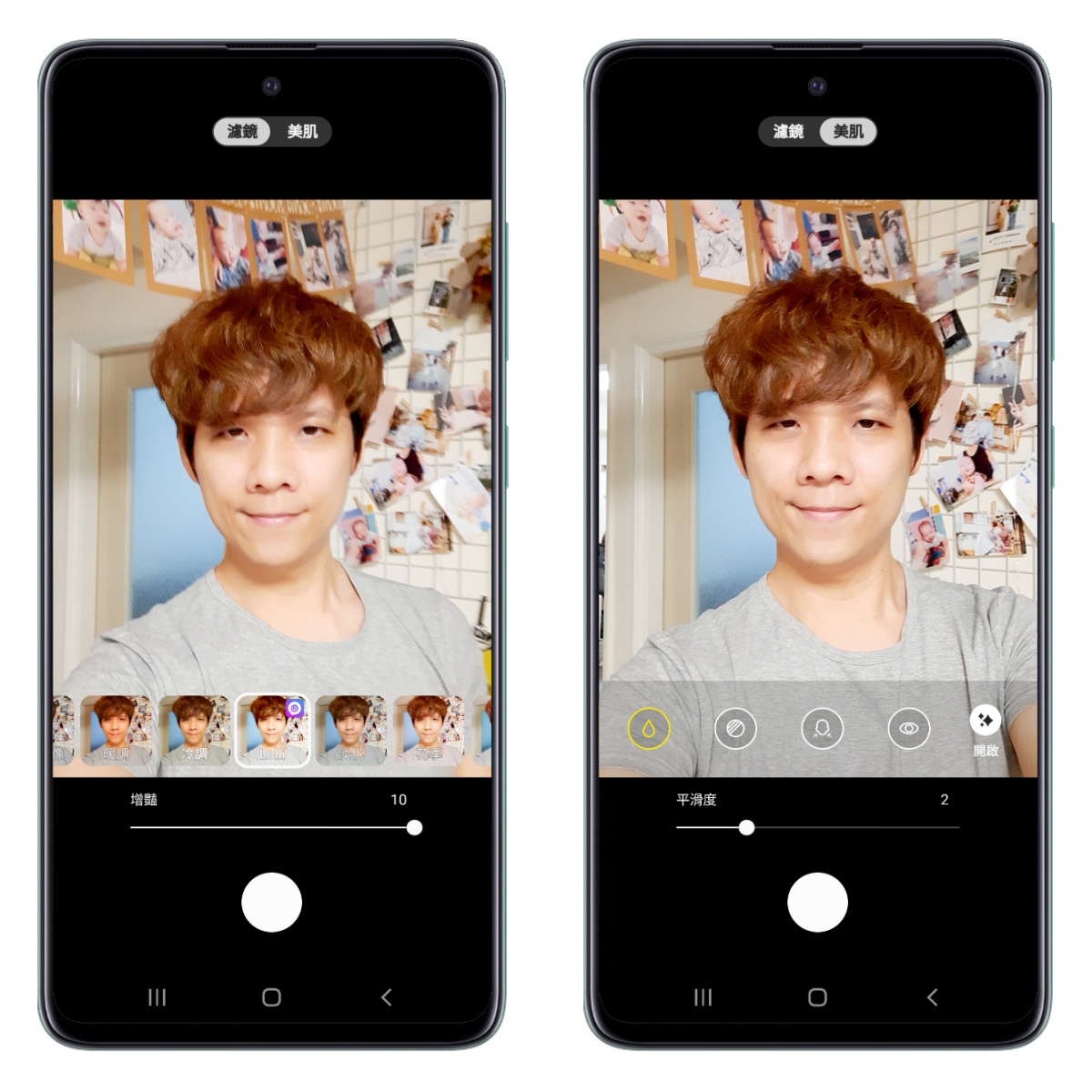 在美顏模式下的自拍效果相當的不錯,如果你不喜歡過度增加飽和,也可以自己手動調整美顏等級。