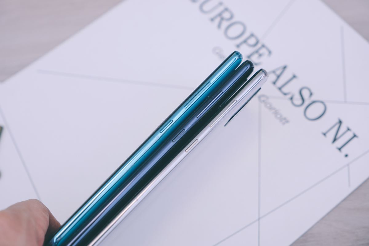 不同的顏色下,邊緣的顏色也都不同,側邊為電源鍵、音量鍵。