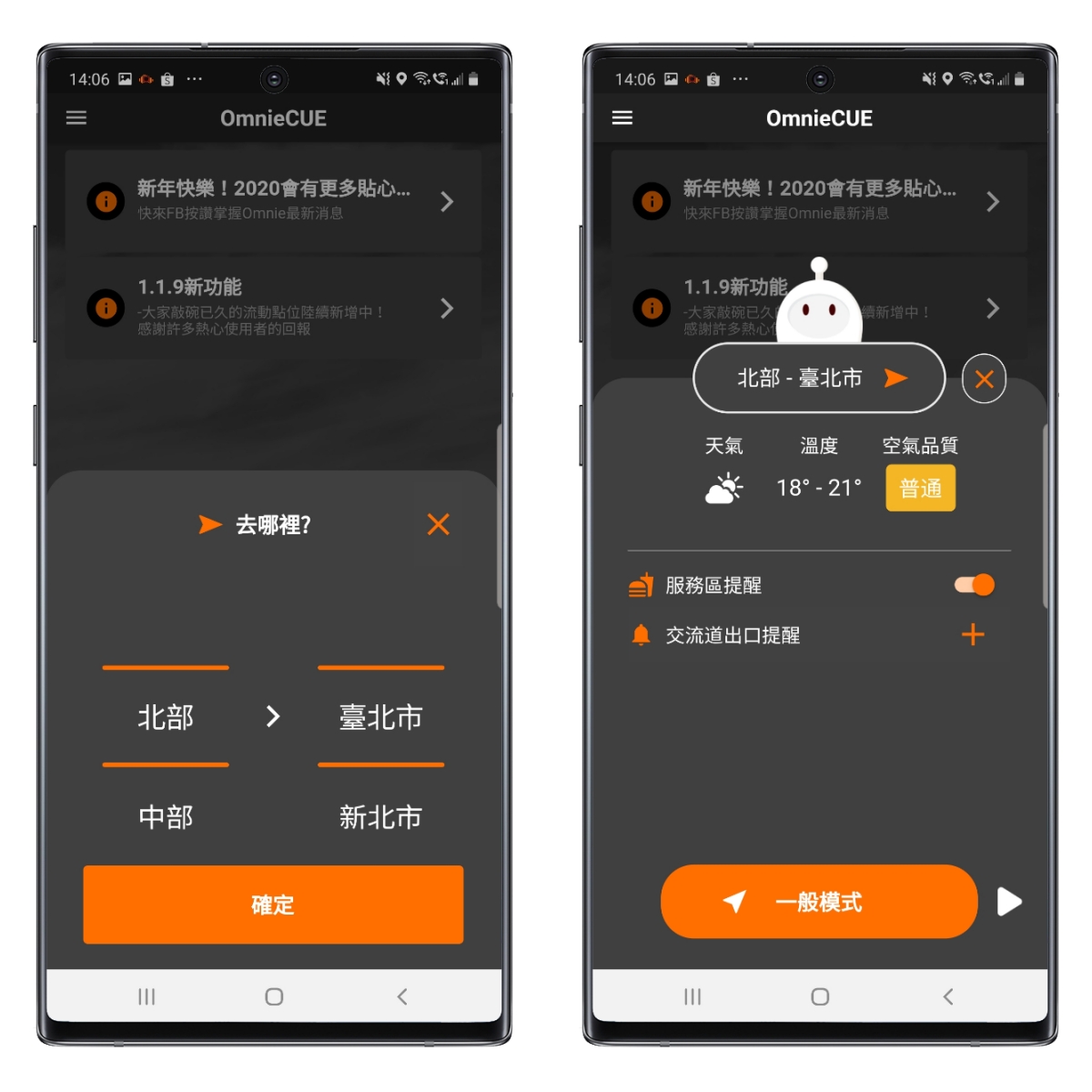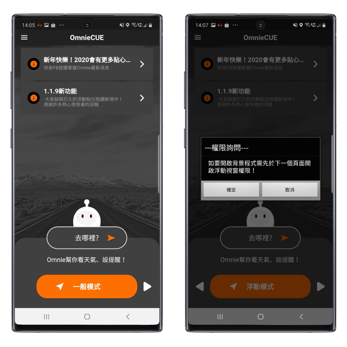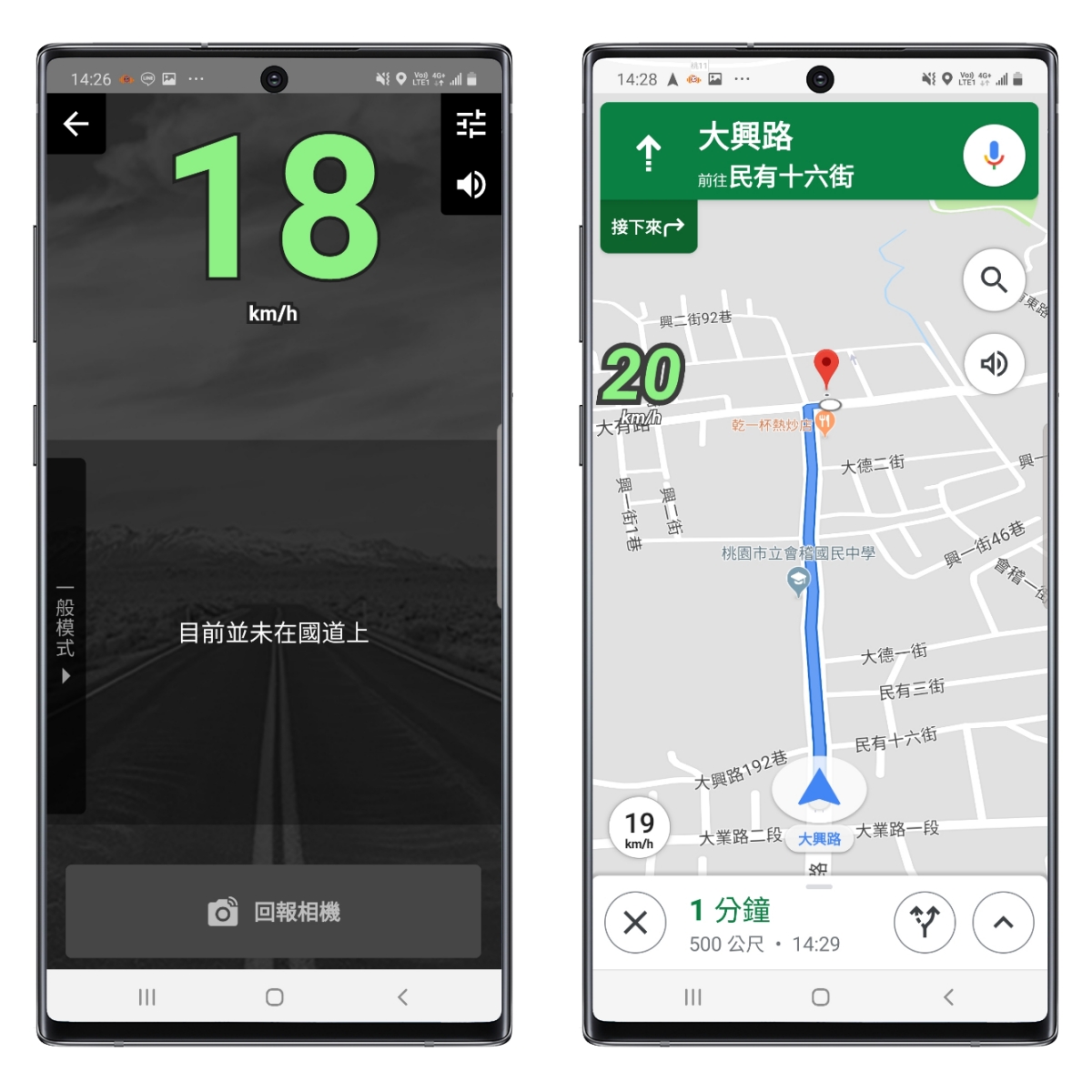下圖右就是浮動模式,開啟 Google 地圖的同時,可以同步使用 Omnie CUE 來查看目前速度及提醒你測速照相,讓你毫無違和感的使用。