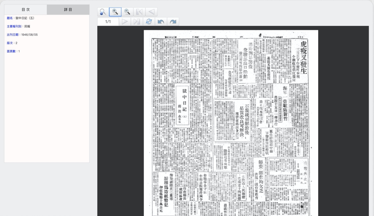 如果是沒有提供 TIF 檔案的,線上直接就可以放大瀏覽,解析度很夠,大家想看看以前的報紙都寫些什麼,就去搜尋看看吧,非常棒的數位典藏內容。
