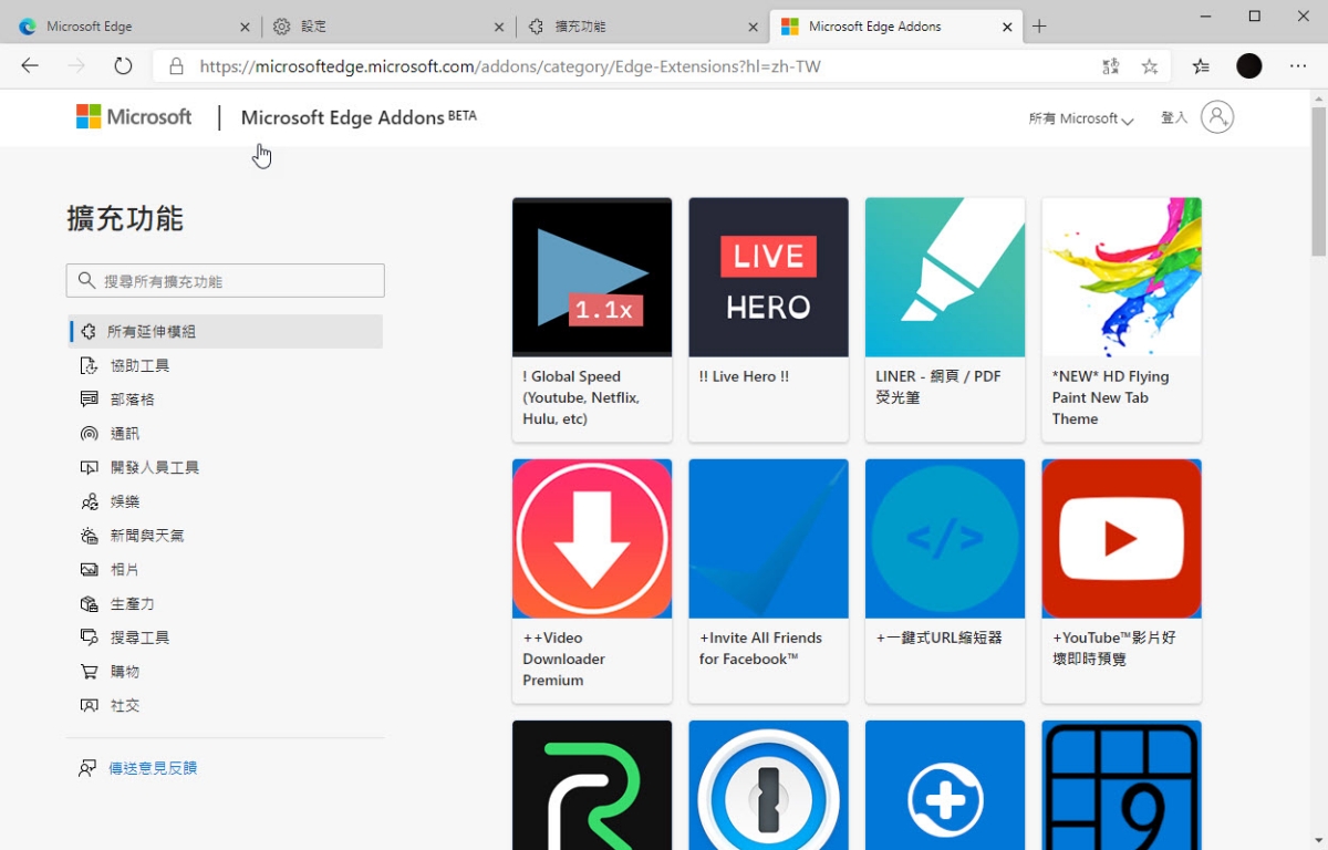 最後來看一下瀏覽器外掛的部份,目前 Edge 的擴充功能並不多,大致上都不是我們會常用的,所以建議一樣可以從 Chrome Store 下載就好。