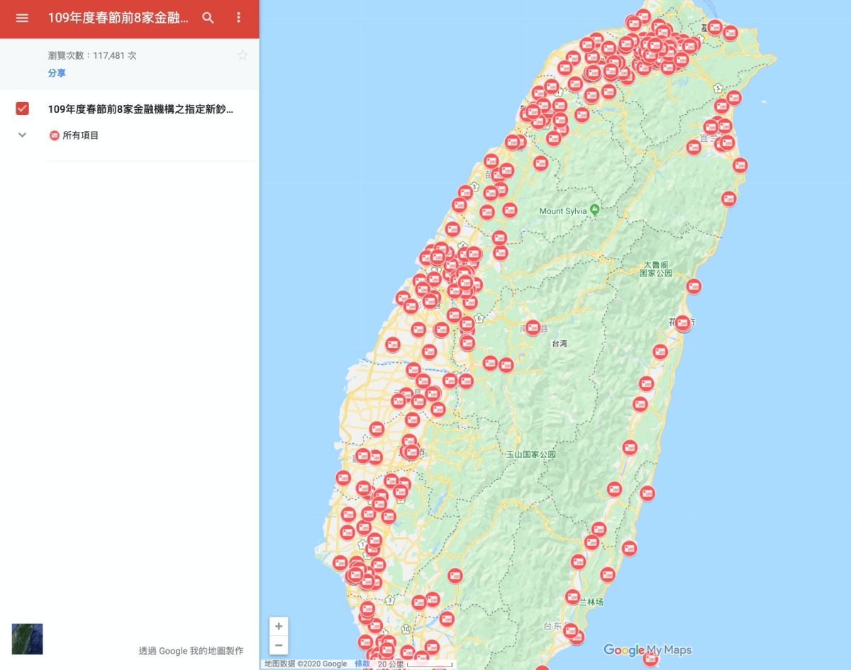 新鈔兌換據點地圖:請點我前往這是由中央銀行所製作的據點地點,大家可以直接閱覽,如果你想要看表格版本,可以在這裡查看。