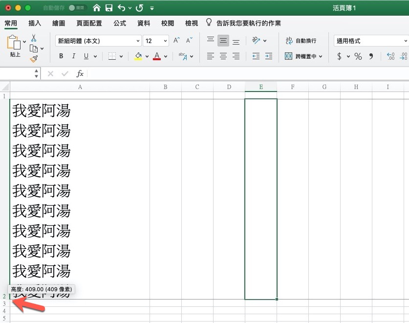 Excel 教學 - 突破欄位最高 409 像素的限制