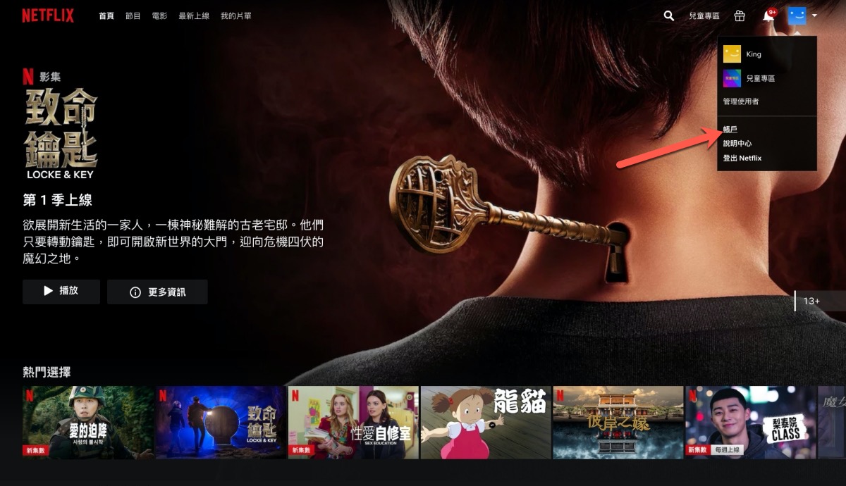 這個設定在 APP 裡是找不到的,請大家直接用電腦的瀏覽器登入 Netflix,然後在右上角進入「帳戶」。
