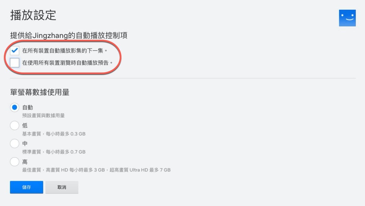 就可以看到播放控制項中,有一個「在使用所有裝置瀏覽時自動播放預告」,預設這二個選項都是勾選的,如果你不想自動播放下一集也可以取消勾選,設定好後就會自動套用到所有登入 Netflix 的裝置上,未來有新裝置登入也會套用,不需要重新設定,非常簡單,有相同困擾的快去設定吧。