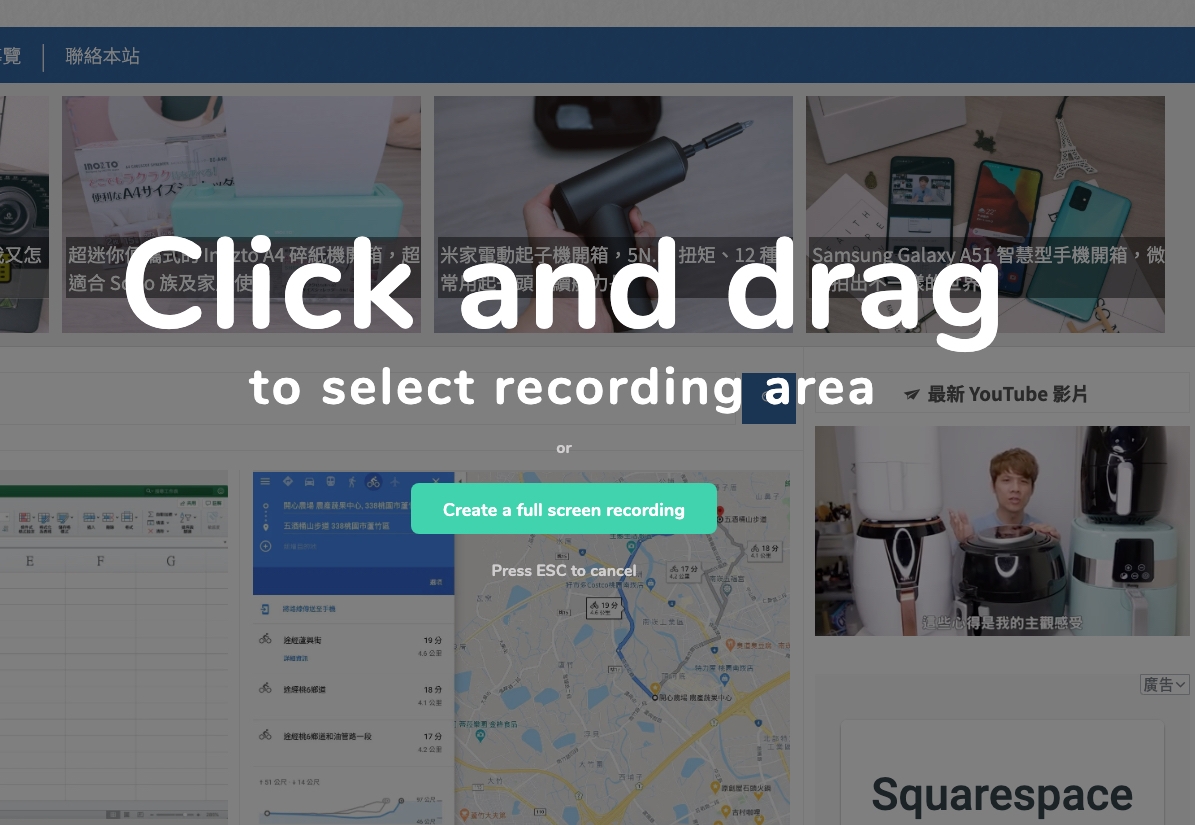 如果圈選區域就像這樣,看你想要錄製哪個部份就直接拖拉出來就可以了。