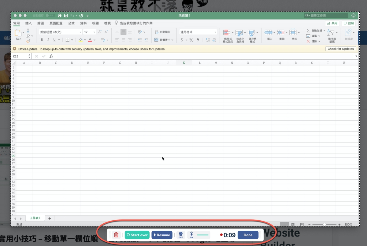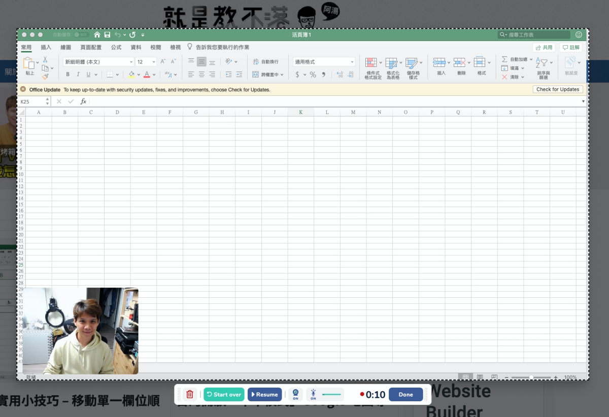 開啟攝影機就會像這樣,跟 Webcam 一起錄製畫面,更有教學的臨場感。