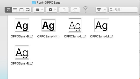 這款字型中文部分是由漢儀字型檔字體設計總監朱志偉指導,黃珍元設計完成,英文部分由美國 Pentagram 五角公司設計,漢儀字型檔西文項目組負責人張暄協作完成,包含 226,003 個字符,總之,能提供免費中文字型就是佛心來著。OPPO Sans 字型下載:請點我下載後直接解壓縮,會看到一共有五個字型檔,分別就是五種字重,直接都安裝即可。