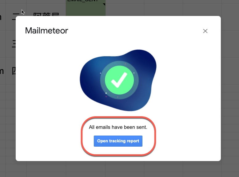 寄出之後還可以追蹤郵件,其實你點擊 Open Tracking report 或是直接關閉這個視窗都可以,都是一樣的,往下來看。
