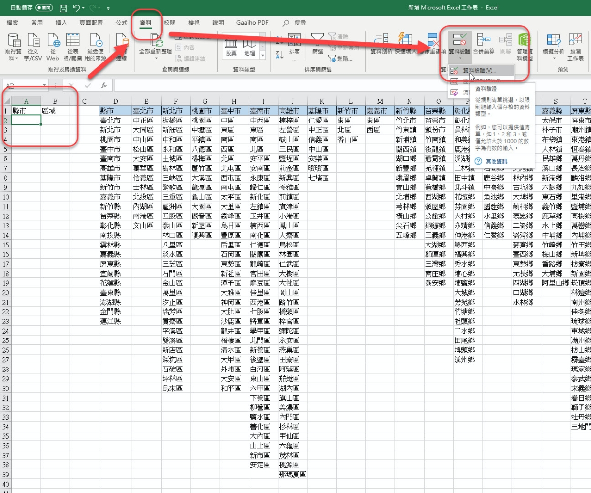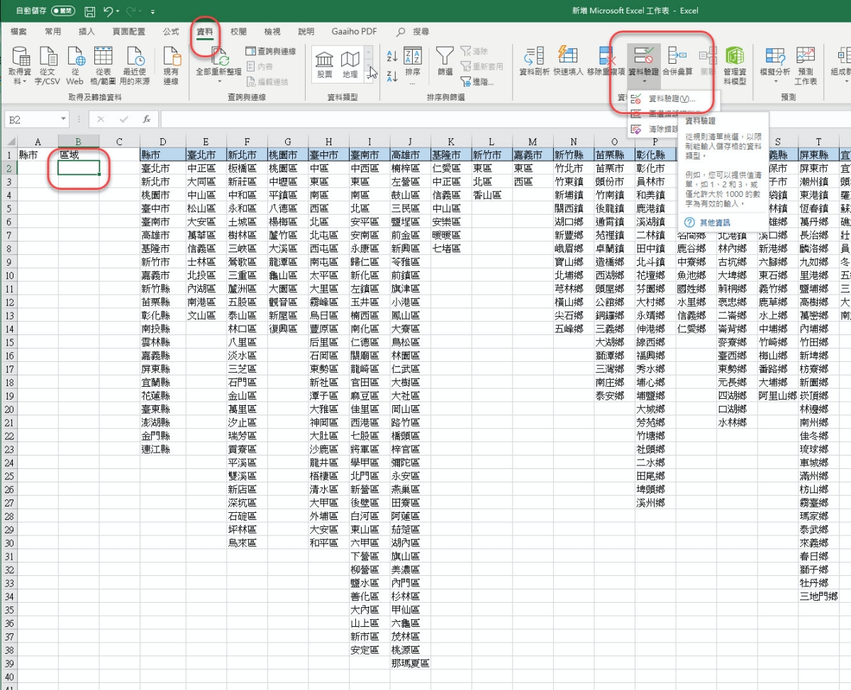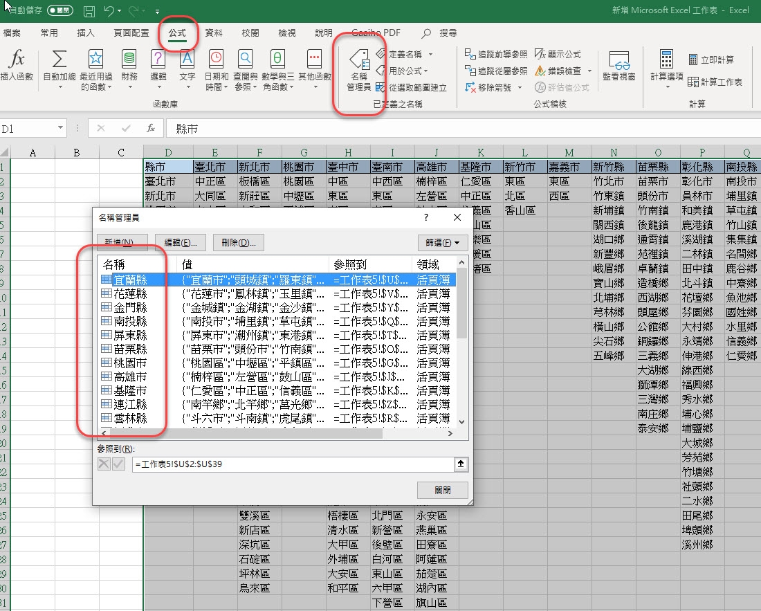 Excel 教學 - 將縣市與鄉鎮區做成多層級選單