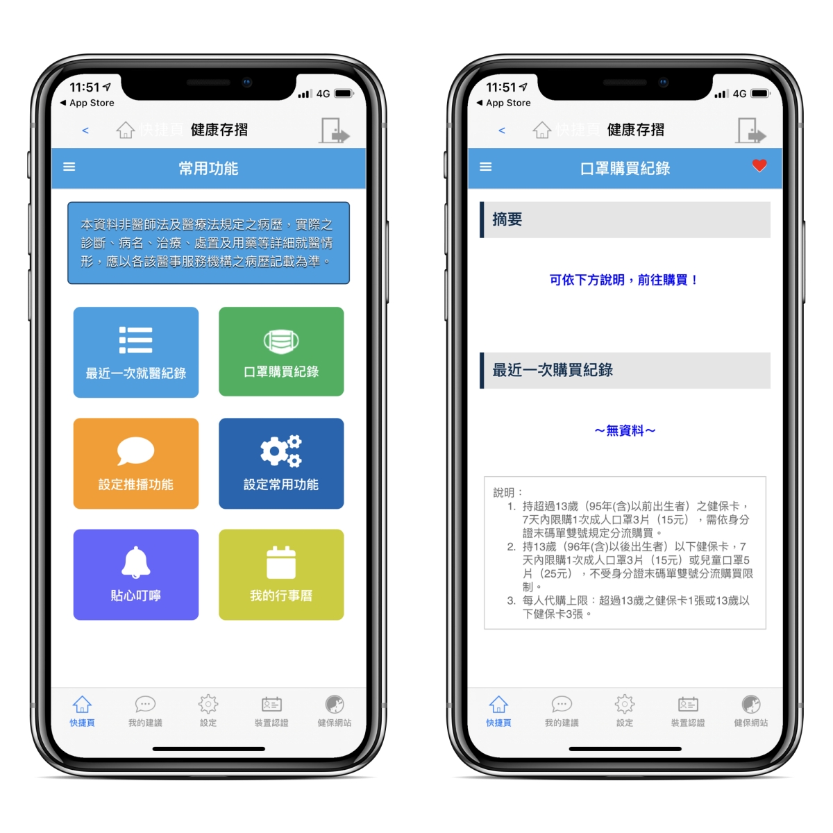然後進入健康存摺後,就可以在這裡查看「口罩購買記錄」,非常的簡單,目前為止阿湯還沒去購買....