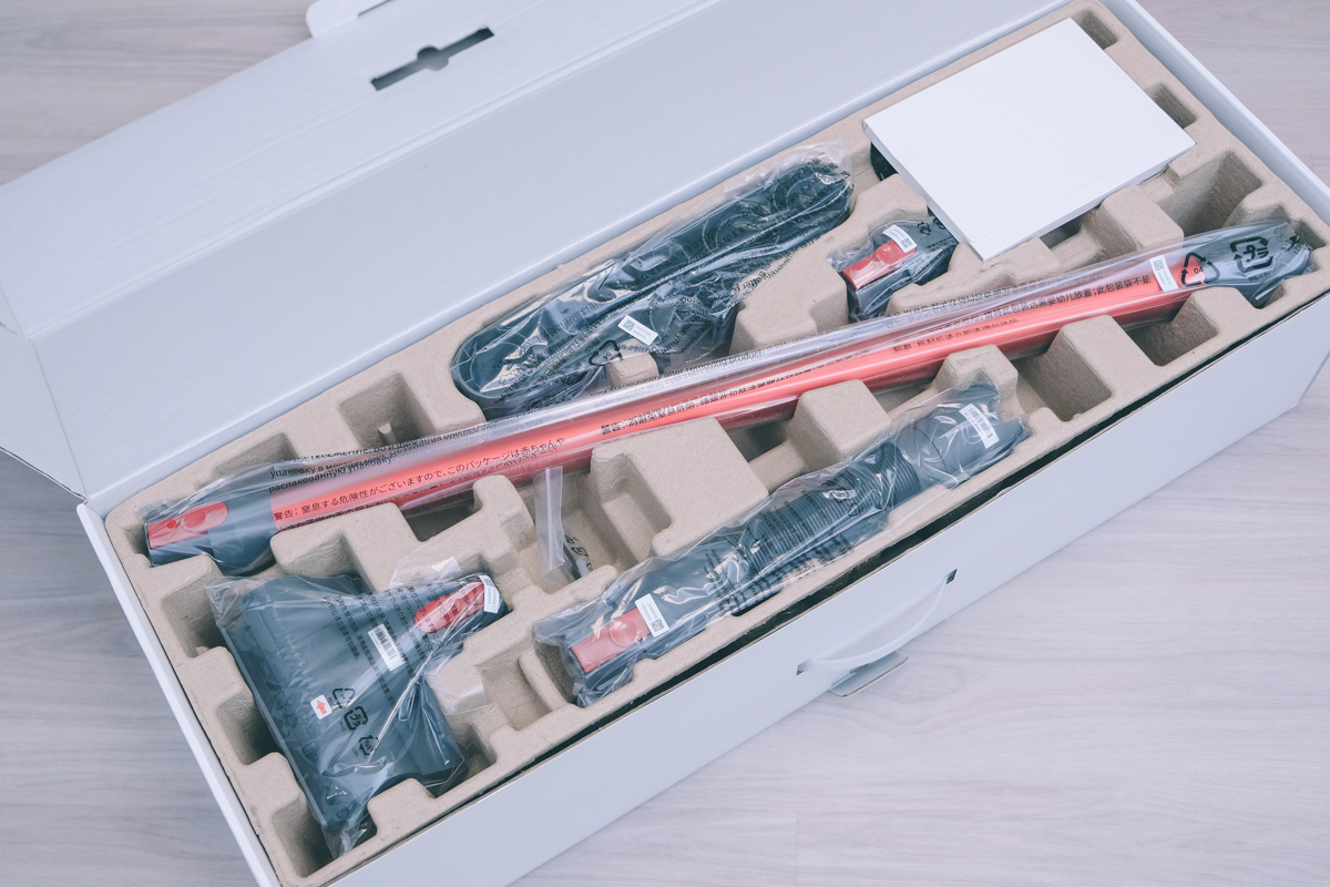 配件的包裝分成二層,都用了硬紙盒隔開放置,重點是沒有放的那麼擠,不論取出跟收放都很方便,這一點我覺得很好,因為有些吸塵器的包裝超擠,不好取出也很難再次收納回去盒子,當你要搬家時想用留下的吸塵器盒子來裝的話,可能就會裝到吐血。